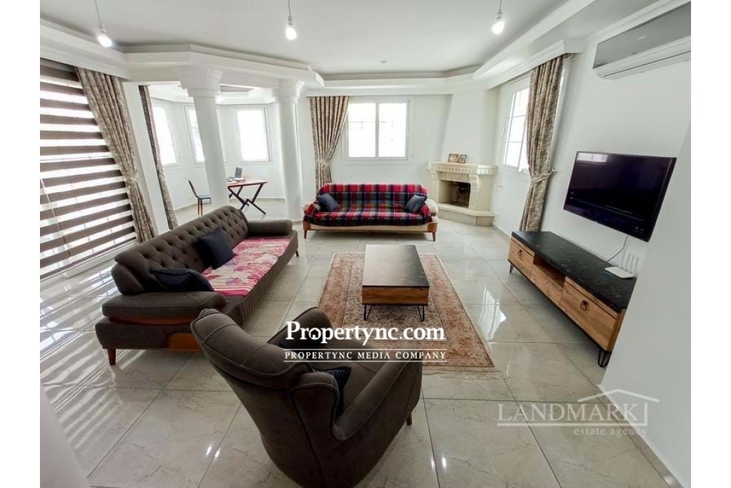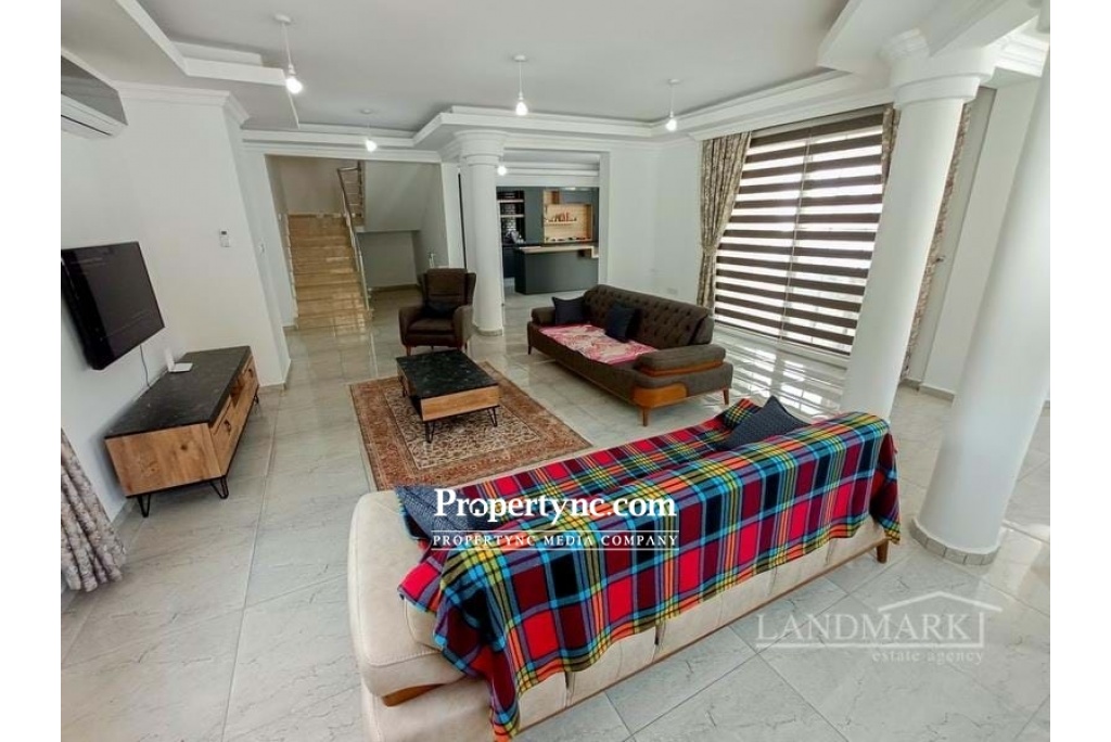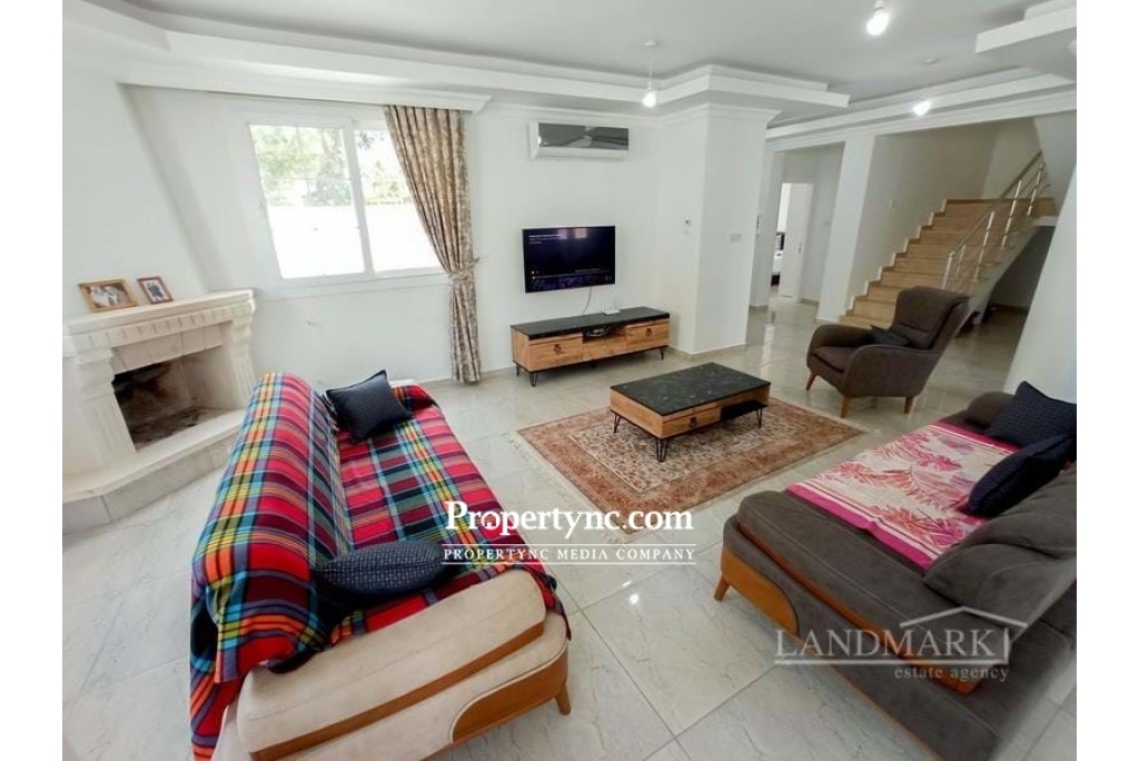 4 bedroom semi-detached villa + fully furnished + private roof terrace + close to Necat British College + sea and mountains views + Title deed ready to transfer