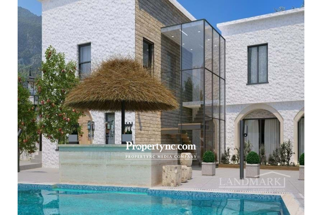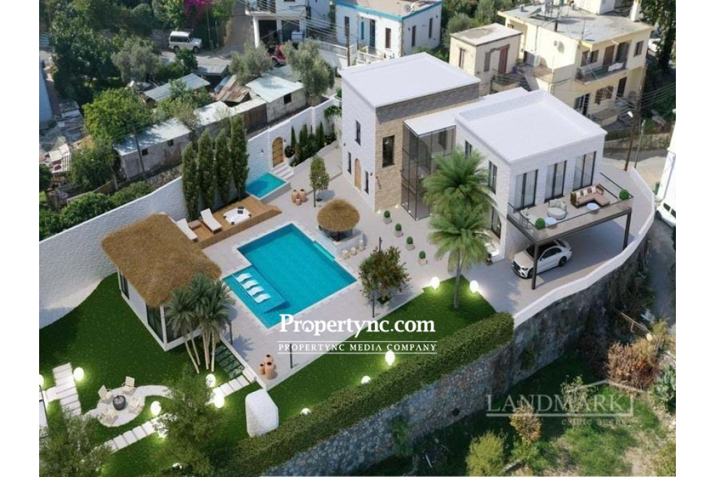 Nestled within the enchanting old town of Lapta, Cyprus. This remarkable residence, once a boutique hotel, will be meticulously transformed into a superior villa, showcasing the rich heritage of medieval architecture and local culture. Step into a world where history meets luxury, where old-world charm blends seamlessly with modern comfort. The villa is a living testament to the enduring allure of Lapita's medieval architecture. Crafted from local yellow stone, its faced showcases the artistry and craftsmanship of a bygone era. Every stone tells a story, and every arch whisper secrets of the past. This house is ideally situated in the Lapta region, offering accessibility, and natural beauty simultaneously. It is conveniently close to the primary highway to the city center, making it a perfect base for work life balance. Nestled amidst vibrant greenery and soothing shades of blue, this villa provides a serene setting with breathtaking mountain vistas and an uninterrupted sea view. Located west of North Cyprus's bustling tourist hub, Kyrenia, it strikes a harmonious balance between tranquility and accessibility. The property is strategically located near renowned eateries and beautiful beaches, making it an ideal destination for relaxation and exploration. Enjoy easy access to popular spots like Sunas Beach Bar, Sardunya Bay, Camelot Beach Club, Lapta Coastal Walkway, and Merit Hotels Regions. (4 min driving) Whether you seek delectable cuisine, vibrant nightlife, or leisurely beach days, you'll find it all just moments away. The villa offers a total of 5 Bedrooms. 2 grand master bedrooms with a walking wardrobe, en-suit bathroom with sea views, and a private terrace. Property also has a big plot, large swimming pool, detached sauna and jacuzzi. 435 m2 internal area 1414 m2 plot size Exchange title deed Title deed in the builders name, VAT payable 11 m2 x 10 m2 swimming pool 4 bedrooms 1 family bathroom 5 en-suits Outdoor WC 2 master bedrooms with stone fireplaces Multipurpose room Fitted wardrobes in all bedrooms Kitchen cupboards Suspended ceilings and spotlights Double glazed aluminum windows and patio doors Spotlights Underfloor Heating Infrastructure Wood burner infrastructure in the living room 6 tons water storage CCTV camera system Stone wall surrounded Pool bar Detached sauna room Jacuzzi infrastructure Expansive deck area for perfect sunbathing Savor outdoor dining area in the outside kitchen Storage space Traditional Cypriot oven in the garden Fire Pit Parking area for 4 cars Lighting under the trees Optional: - Electric gate system; - Semi-closed car park with roof; - Jacuzzi; - Air conditioner units; - Outside pool house; - Underfloor heating heat pump and control system; Payment plan: - 5% deposit; - 50% down payment; - Rest 45% within 12 months with no interest NOTE: Renovation will start as soon as reservation deposit will be paid!!! - REF: 2104