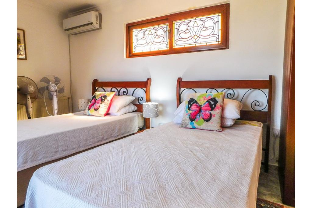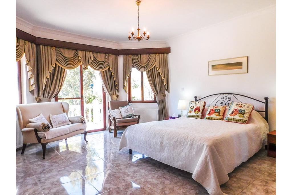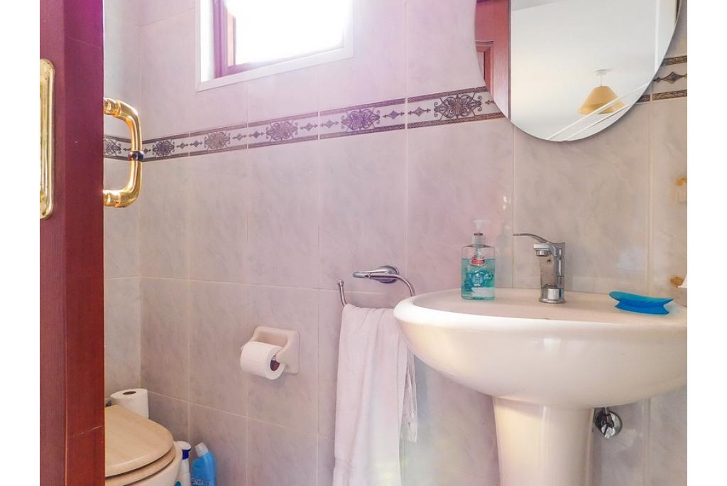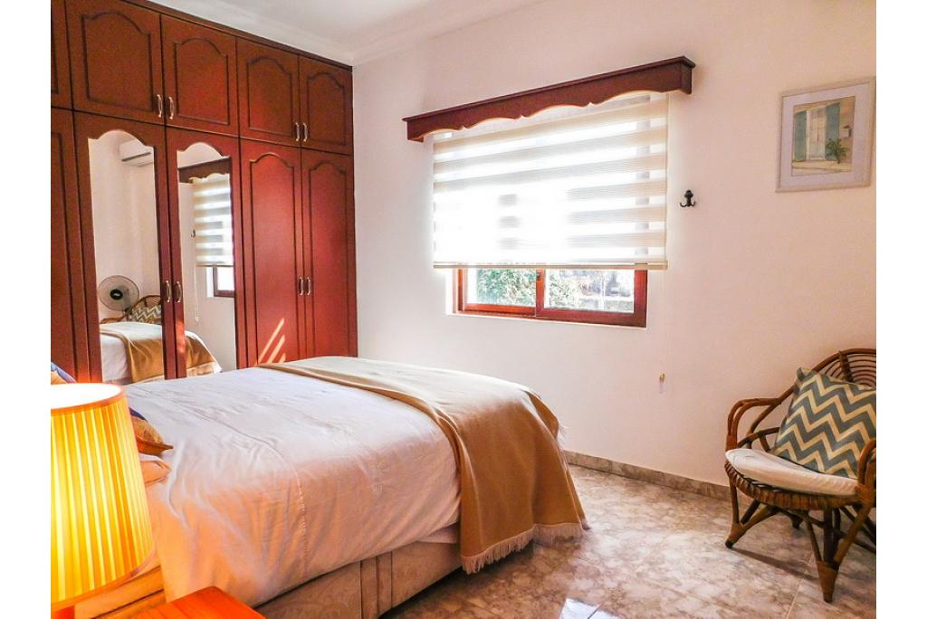 The master bedroom is a really spacious size with patio doors leading to the terrace area, pool and sea view. It is a very grand room with fitted wardrobes and has its own bathroom.