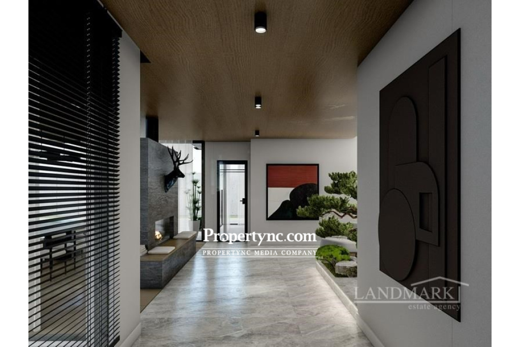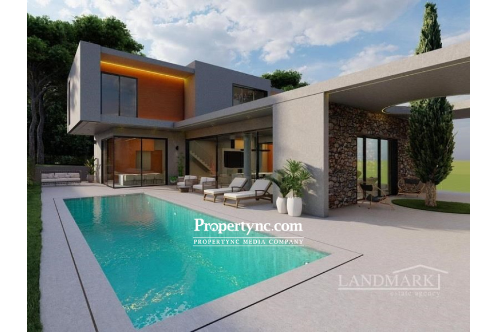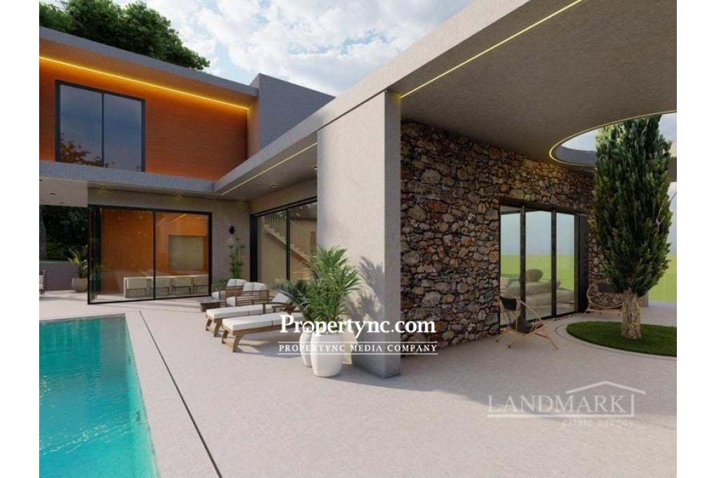 This impressive modern-looking off-plan luxury villa will be situated in the quiet picturesque village of Edremit, not far from all the amenities. The land has an elevated position and a pleasant sea view. Internally, the villa is very spacious. It has a double-sized living room with a fireplace and large wall-to-ceiling infinity windows with thermal insulation. The windows overlook the pool area and the garden. The separate kitchen is fully fitted and has an island and a pantry room. It also has panoramic windows overlooking the pool area. There is also a guest room on the ground floor. Four bedrooms are located on the first floor all with ensuite bathrooms and three of the bedrooms have walk-in wardrobes. Downstairs there is a basement area that could be used for a gym multi-functional area with its own bathroom and a garage for 2 cars. This amazing house can make the best home for a family to combine luxury living with a close touch of nature. 387m2 internal area 710m2 plot size Exchange title deed VAT to pay Trafo fee to pay (TBC) Completion in 2023 Private 10m x 4m swimming pool 5 bedrooms 4 en-suite Bedrooms 3 with Walk-in Closets Fireplace Spacious Kitchen with Pantry VRF Heating and Cooling System Spacious Cloakroom at the Entrance Double-sided Living area with Pool and Sea View Infinity Windows with Thermal Insulation Semi-open Courtyard Closed Garage at the Basement Separate Utility Room and Storage Gym multifunctional area with Bathroom + Garage Payment plan: 35% down payment 25% concrete structure completion 25% floor handle, brick works and plaster work completion 15% key handover - REF: 1904a