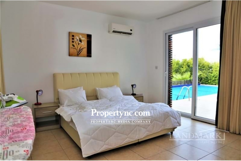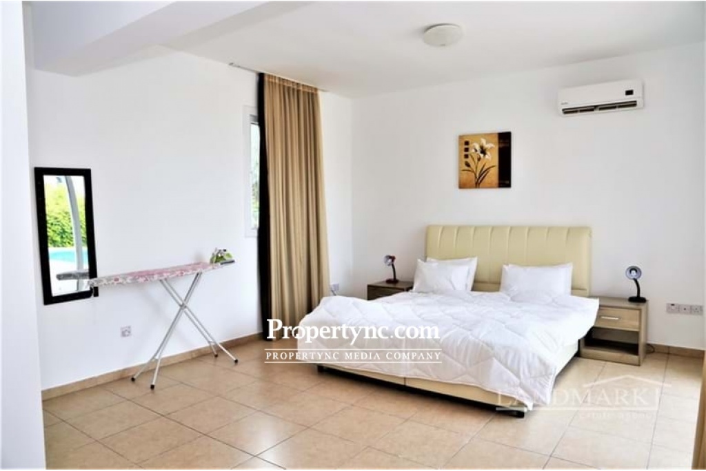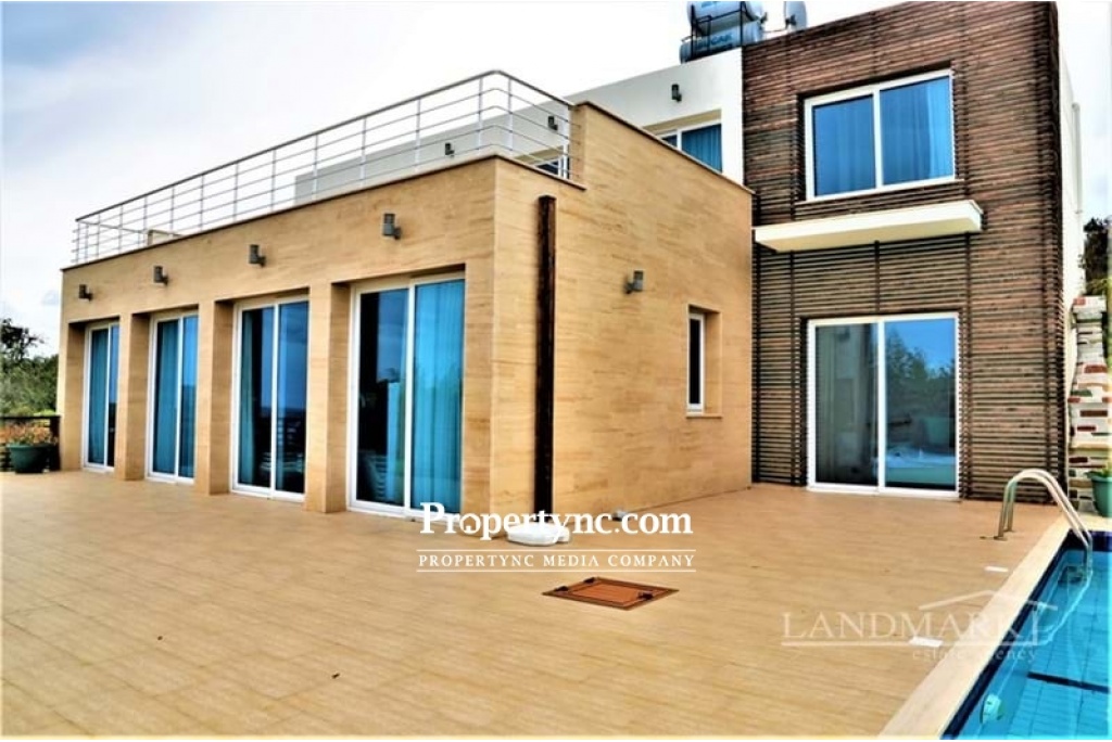 This development is positioned at prime location in North Cyprus combining unspoiled pristine mountain and seaside views with proximity to all amenities. Built on a breathtaking cliff at over 60 meter above sea level, the projects unique and exclusive topographic gives each villa perfect views of the clear blue Mediterranean and fresh sunny afternoon breeze. This villa is one of few most elevated ones, and benefits from the most panoramic and open views. Being a 5 bedroom villa it offers a lot of living space, with a beautiful cozy garden and a large private infinity pool, what can be better? All villas on this lovely estate are conveniently located in just a 5 minute drive from most local amenities, shops restaurants and coffee shops with only a 25 minute drive to central Kyrenia. Internal size 170m2 Plot sizes approx. 630m2 Large terrace appr. 40m2 Exchange title deed Currently shared land title deed in the builders name, VAT has been paid Completion 2010 5 bedrooms with built-in wardrobes, 2 having an en-suite bathrooms 1 family bathroom, 1 guest WC Fully equipped open plan kitchen with appliances Fully furnished 10m x 5m infinity pool with roman end Ceramic flooring All rooms air conditioned White double glazed PVC windows Wooden pergola in the garden Upper terrace with aluminium railings Natural stone wall all around the property Private parking Great rental potential - REF: 380a