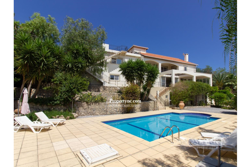 This villa is truly a gem, completed in 2006, and located in the highly sought-after Bellapais village, boasting one of the most enviable positions. The villa is perfectly positioned to enjoy stunning views of Bellapais Abbey as well as scenic sea and mountain views. Despite its proximity to the village center and roads, you will find this villa incredibly peaceful, allowing you to fully immerse yourself in its stunning location. The living area is spread over two floors, offering ample space for a large family or a group of friends. The lower floor houses a fantastic pool area, one level below the lounge, which includes a large sun terrace with seating area, bar, w.c., shower, BBQ, dining terrace, and an Ottoman seating area. You will find that the pool area is the perfect spot to unwind and soak up the beauty of your surroundings. The lounge area is incredibly spacious and cosy, perfect for relaxing with your loved ones. It features a wood burner and ample access to a large covered terrace that takes full advantage of the beautiful views. The lounge is open plan to the kitchen area, which includes all stainless steel kitchen appliances and granite worktops. This area is perfect for entertaining and creating unforgettable memories. This villa boasts five double bedrooms, three of which have en-suite facilities, while two have access to a spacious covered terrace area with awe-inspiring views of the mountains, sea, garden, and pool. The master bedroom is a spacious and luxurious retreat, featuring a study and separate terrace area with stunning views. Four of the bedrooms are located on the first floor, where there is an additional bathroom, while the fifth bedroom is on the ground floor, adjacent to the cloakroom, offering privacy and comfort. On the roof level, there is a further terrace with stunning views of the abbey, allowing you to take in the spectacular scenery. From the roof terrace, there is access to an enormous loft space that offers the potential for a substantial games room or office, making this villa perfect not only for leisure but also for work. The garden is a mature and well-maintained oasis, with a mix of trees and plants that only add to the overall ambiance of the rooms. You will find yourself surrounded by the beauty of nature. In summary, this stunning villa is perfect for anyone looking for full time living, or to purchase as an investment. The villa offers ample space, privacy, and comfort, with breathtaking views and a fantastic pool area. 320m2 internal size 1672m2 plot size Completed in 2006 Title deed is in the owners name no VAT to pay 10m x 5m swimming pool Mature, secluded and easy to maintain gardens 5 bedrooms 3 ensuite bathrooms 1 family bathroom 1 cloakroom Kitchen appliances with stainless steel finish Granite worktops Air conditioning x 6 Central heating Wood burner Marble flooring throughout Flyscreen BBQ area Ottoman seating area, Inc. Kitchenette and toilet Roof terrace Huge loft space which can be utilized - REF: 1220a