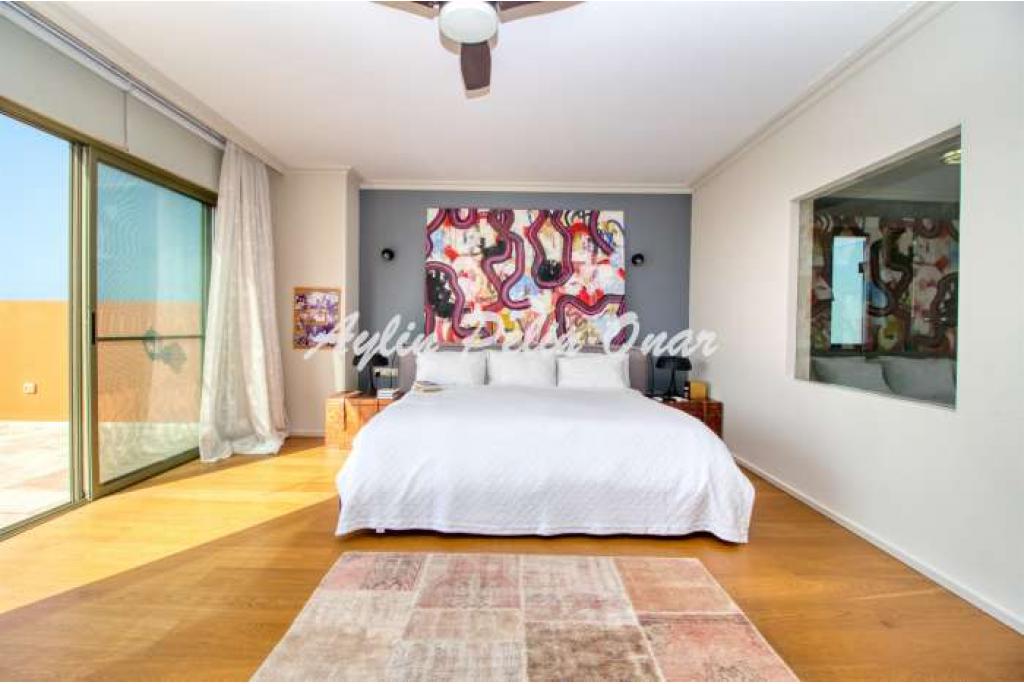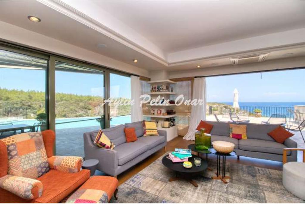 REF:ESN161 Mediterranean style villa for sale by the sea! This very special villa with 802 usable areas, 7 rooms and 7 bathrooms is designed especially for the use of large families and guests. With its special location where you can reach the beach right in front of you or the golf course 1 minute away, this rare property of ours offers a unique opportunity not only for living but also for investment. In our house, where we can enjoy the view and natural beauties from every room, many details such as a helper's house and sauna have been considered. Just contact me for more detailed information about this special villa with a weekly rental income of 12,000 Euros.