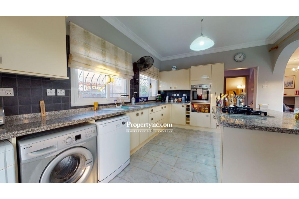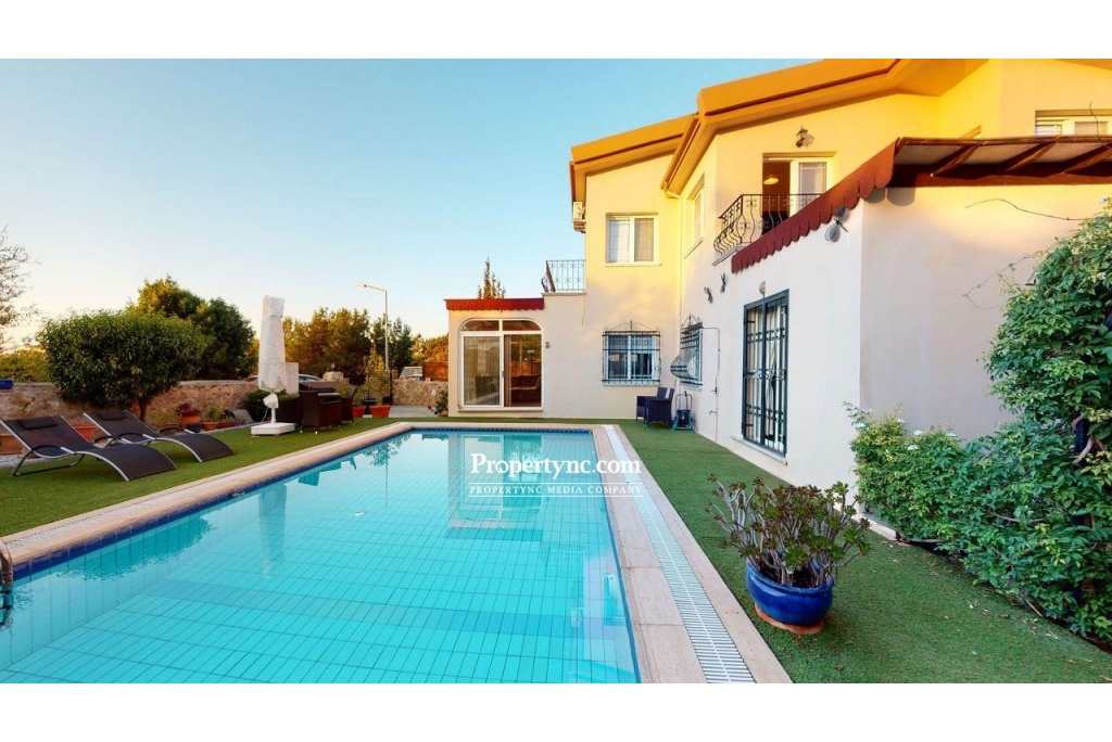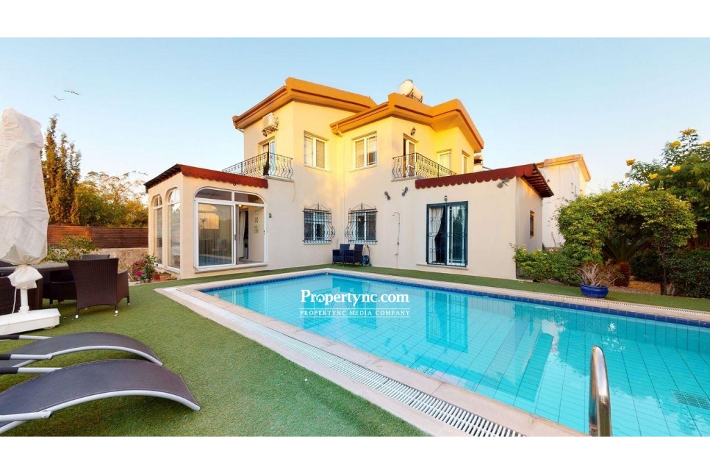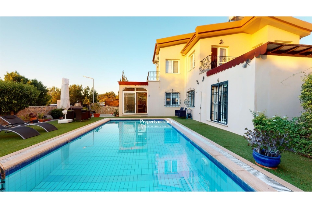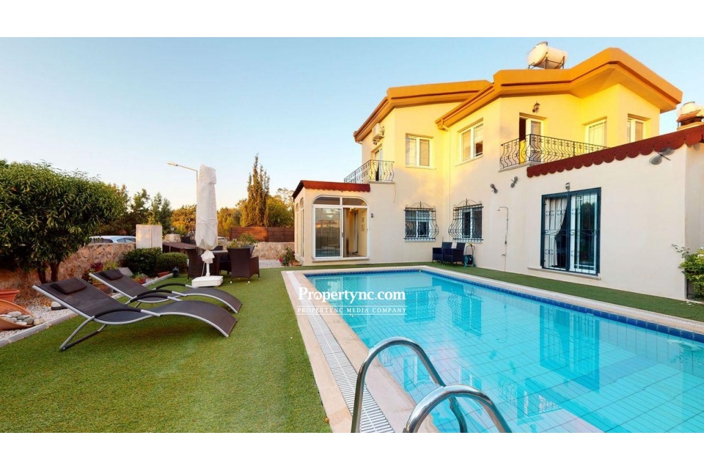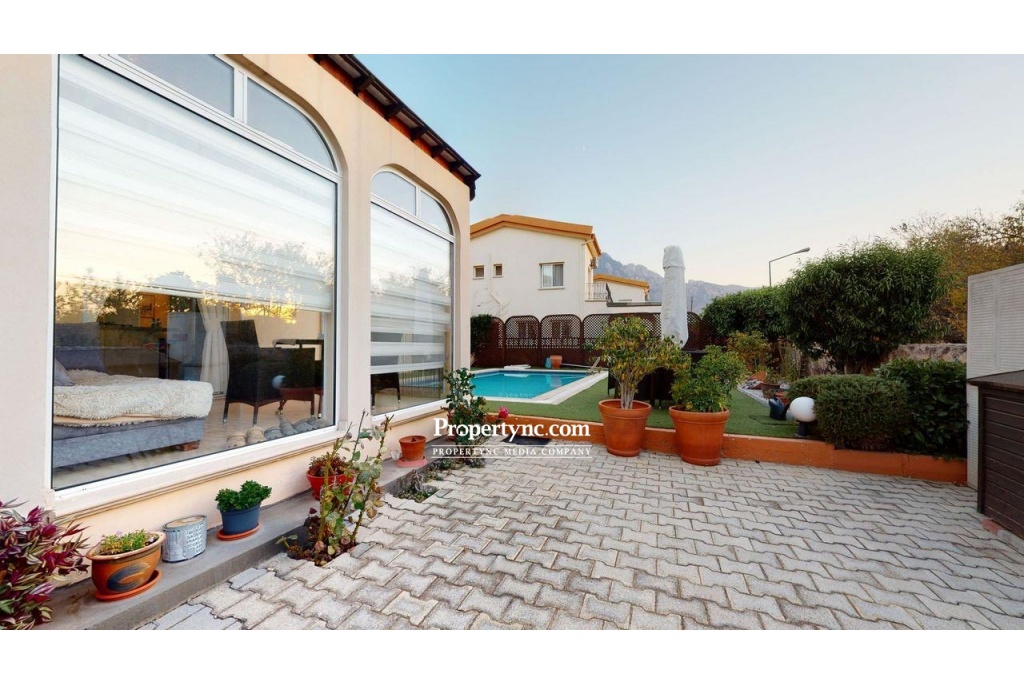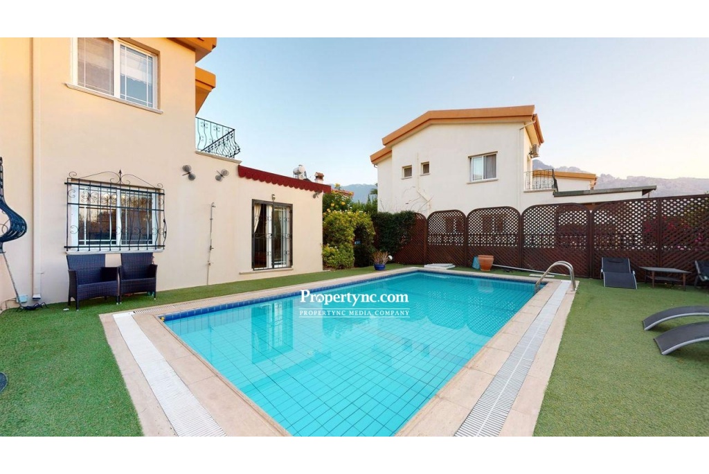 A beautifully presented, 3 bedroom villa located in the peaceful village of Karsiyaka with spectacular mountain views. The main door opens in to the spacious entrance way, with a downstairs toilet and a grand marble staircase leading to the first floor. The downstairs patios have been converted into additional rooms, creating more indoor space downstairs for a dining room and a lovely sun room, both which lead into the garden and the private pool. The kitchen was imported from England and has been designed to utilise space, with corner cupboards and extra storage built in around the oven. Upstairs boasts 3 large sized bedrooms, with one en-suite, and a family bathroom complete with bath and over bath shower. Each bedroom has a large balcony with space for outdoor seating to enjoy those breath-taking Cyprus sunsets. Viewing is recommended to truly appreciate the beauty of this property. Call now to avoid disappointment.Live Your Best Life!