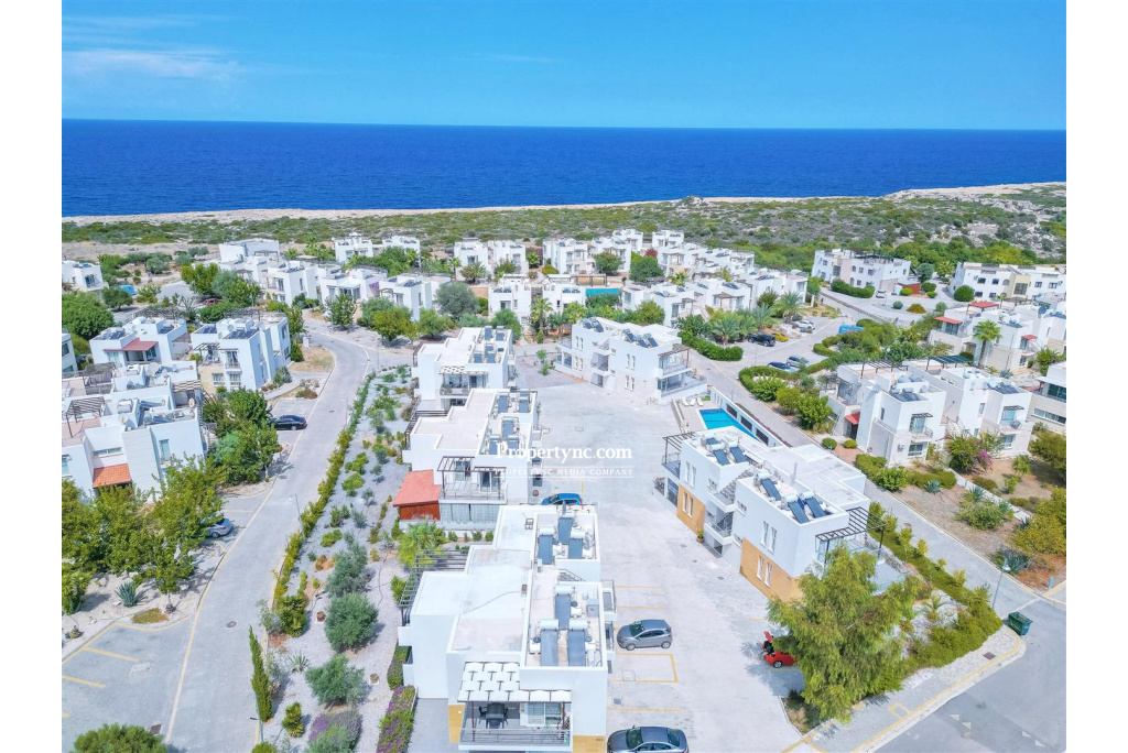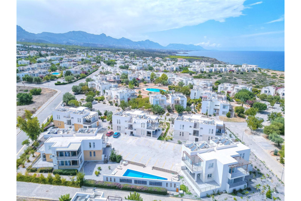 A completely new 1 bedroom, 1 bathroom penthouse with a roof terrace in the heart of the sought-after development of Turtle Bay Village in Esentepe, only a stone's throw away from the sea. The open plan kitchen/living room leads out to the spacious balcony, ideal for al-fresco dining and enjoying the hot Mediterranean sun. The double bedroom boasts plenty of storage space. Offered to the market newly furnished with all brand-new white goods and air conditioning included.The on-site management company offers full rental packages with amazing rental potential – Net Return of 6% Per Year. The site has private beach access as well as an onsite restaurant.Extensive communal facilities including 7 swimming pools | 4 Children Pools | 2 Tennis Court | 1 Basketball Court | Gymnasium | Outdoor Gym | Children’s Playground | Giant Chess Board | Mini Golf | 2 Natural Beach Coves | On-Site Management Office | Café & Bar Live Your Best Life
