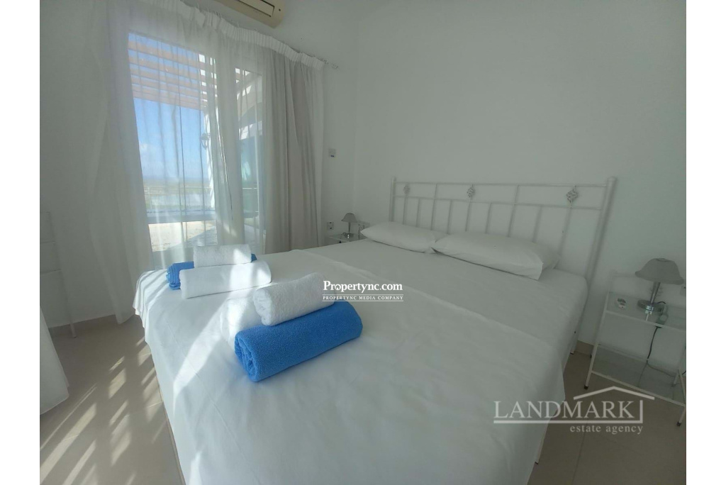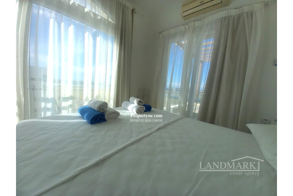 This apartment, nestled in the idyllic Beachfront Resort in the Northern coastline region of North Cyprus, boasts one of the most prime locations in the area. The property is well presented and offers breathtaking panoramic views of the Mediterranean Sea and the beautifully established gardens of the resort. The apartment comprises a spacious master bedroom fitted with wardrobes and direct access to a large terrace that provides a scenic view. The second bedroom is furnished with two single beds and is also equipped with fitted wardrobes. A family bathroom with a shower facility completes the sleeping accommodation. The property features an open plan lounge dining area that is seamlessly connected to a fully fitted kitchen, a design that encourages social interaction and convenience. In addition to the indoor spaces, the apartment includes a terrace that presents good views of the Mediterranean Sea and the beautifully landscaped gardens of the site. Facilities include an indoor heated pool, outdoor pools, a gym, a spa, and a restaurant. 85m2 internal area 95 m2 including terraces Turkish title deeds Title deeds on the builders name, VAT is payable Shared swimming pools heated indoor and outdoor Fully furnished 2 bedrooms, 1 shower room Fully fitted kitchen Fully fitted wardrobes Well maintained site with mature gardens Air conditioning Large Balcony Gym and Wellness Centre and spa Water sports (including the World famous wind surfing club) on the resorts private beach Off road parking Maintenance - £90 month - REF: GR2127