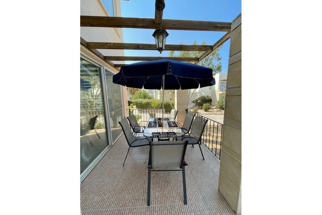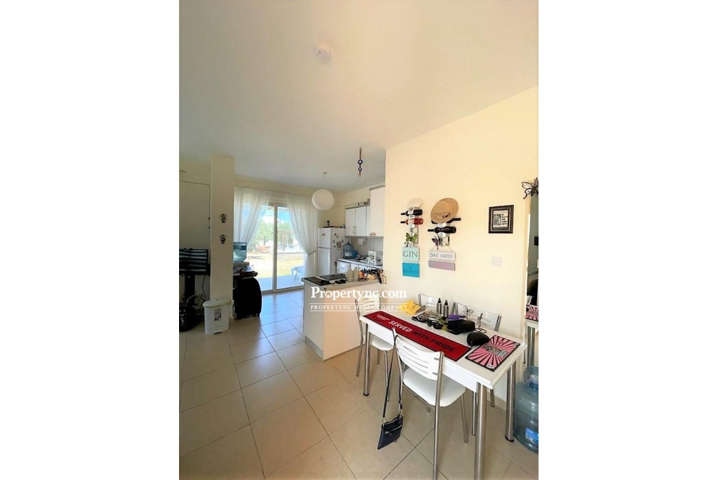 A well presented, 2 bedroom, 2 bathroom garden apartment in the heart of the sought after development of Turtle Bay Village in Esentepe, only a stones throw away from the sea. The open plan kitchen/living room leads out to the spacious patio area, ideal fo