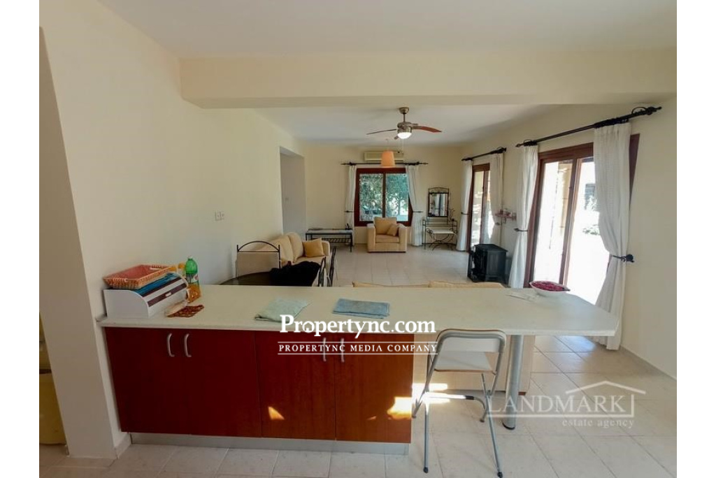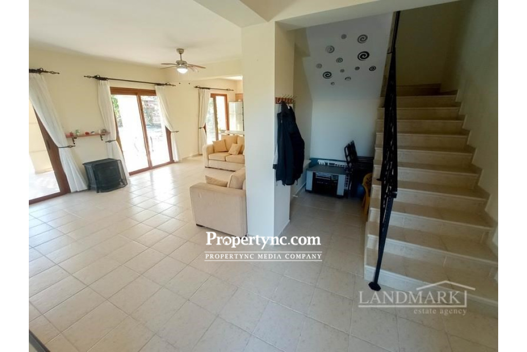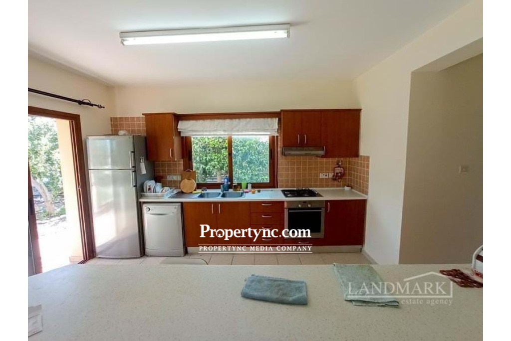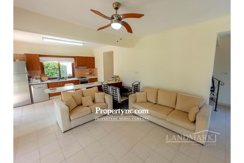 This unusual site consists of only 8 three bedroom semi-detached villas, literally 500 metres from beach and excellent location for local shops, bars and restaurants. Having 3 bedrooms on the first floor all with fitted wardrobes, the master with modern en-suite with full size bath and there is also a modern family bathroom with bath. The ground floor has an open plan kitchen, kitchen dining area with breakfast bar. The lounge kitchen has 3 sets of patio doors leading on a terraced area overlooking the garden. There is also a utility area and guest W.C. There has been central heating infrastructure fitted in to the property for the future if required. Built on a generous sized plot providing privacy, and there is a communal pool area. These where built purposely to take full advantage of the views and glorious, long summers that Cyprus is famous for. This is a lovely property close to all amenitiesand the famous beach clubs Shayna and Coronaro. 138m2 internal size 25m2 of terrace 500m2 plot size approx. Exchange title deed Title deed is ready to be transferred, VAT payable 5m2 x 10m2 communal pool Fully furnished 3 bedrooms Family bathroom with bath & W C En-suite in the master bedroom with bath Air conditionings x 4 Kitchen appliances Private garden Short walk to a sandy beach 10mins walk to Shayna beach Close to shops and amenities - REF: 426f