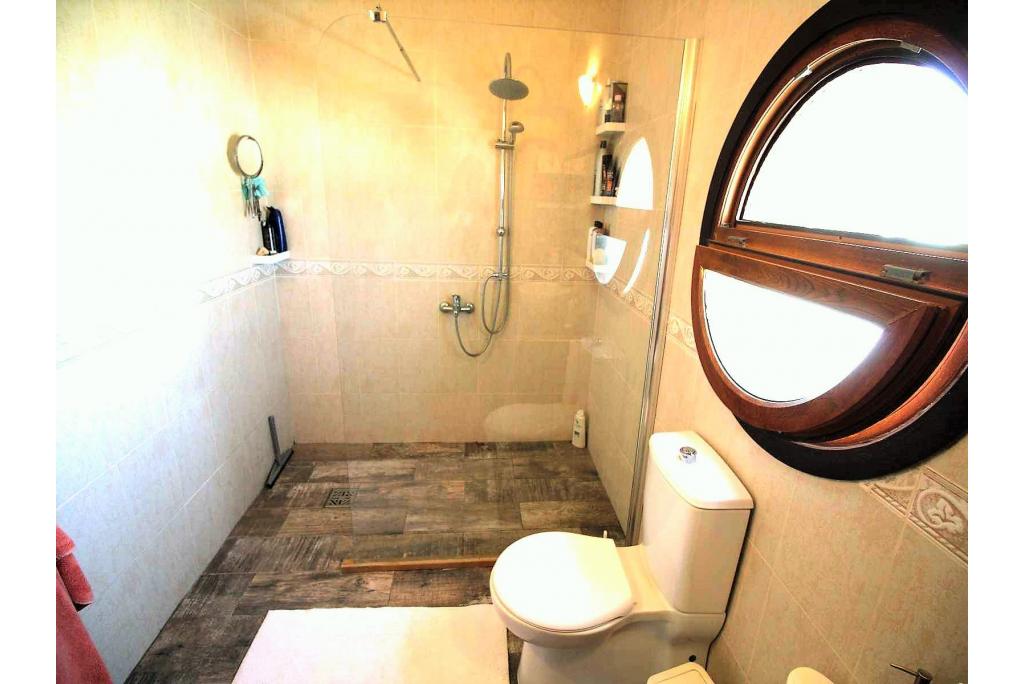Set in mature gardens with great outdoor living space, comprising of Poolside Bar & Gym with large dining Terrace and 10 x 5 Swimming Pool. Owned since New by current owners with shared title in owners name and VAT paid. Private Corner plot with stunning views over the mountains with secure external storage, large driveway for 3 cars and car port for 2 cars. 1 km from the International 18 Hole Championship Golf Course and 10 mins from the beach. Entrance to the property via double driveway gates or walk in gated pathway up to a secure porch area ideal for relaxation. All land registry and property taxes paid and title deeds in owner’s name.