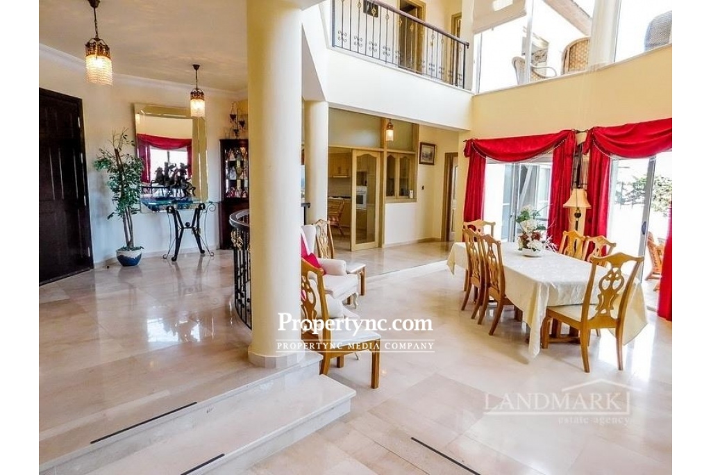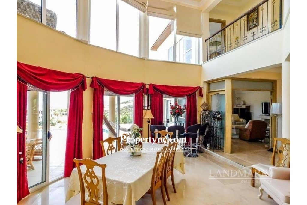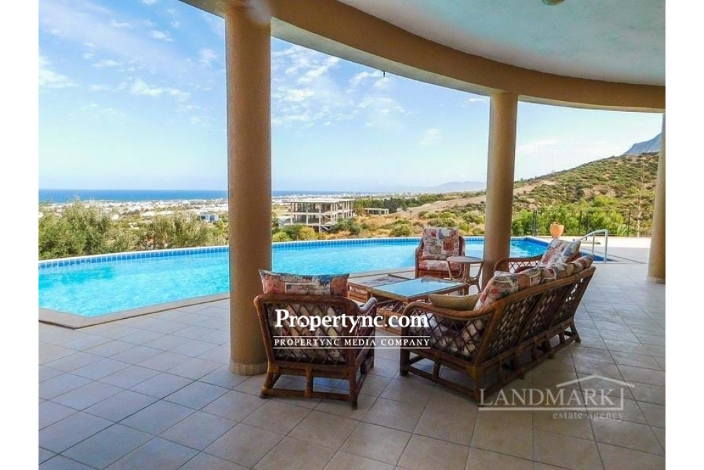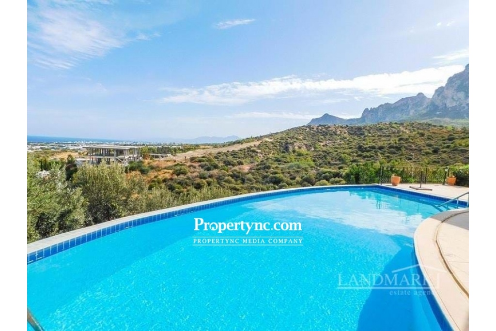 Dont miss this opportunity to purchase a dream 4 bedroom villa with one of the most dramatic panoramic views on the island!! Located in an elevated position with luxury villas only in the neighbourhood. The villa offers everything you may need for a comfortable living. The interior is very spacious, and has been furnished and decorated very tasteful. You enter the property to a spacious entrance hall, it has a sunken dining area with focal columns and has triple patio doors leading to a large covered outside terrace overlooking the pool area with its magnificent views. The lounge is at one side of the hall, again with plenty of patio doors taking advantage of the views and has an open fire place for a cosy winter time. To the other side of the hall is the kitchen with fully fitted units including white goods and has a utility room! Also one bedroom with en-suite, fitted wardrobes and has a lovely sea and mountain views. On the first floor you have a spacious gallery landing area, there are 3 bedrooms all of a spacious size, all with en-suite bathrooms. 2 bedrooms lead out to the upper terrace taking advantage of the amazing views. Both of the terrace areas are really a huge focal point of the villa and was built elevated to have the best views a property could offer with both the Mediterranean Sea and the picturesque mountain range. There is a curved infinity swimming pool at the terrace area and also has an outside toilet, shower and storage area. At the entrance to the house is a double garage. You also have a green area with a mix of plants at the lower part of the garden. Truly a fantastic spacious home ready to move in! 488m2 internal areas approx. Ground floor 232m2 First floor 184m2 Double garage 51m2 Outside shower, toilet, and storage 21m2 ¾ of a donum approx. Share of a land title deed VAT paid Exchange title deeds Completed in 2010 13m x 4m curved pool Furniture negotiable 4 bedrooms 1 to the ground floor 3 on the first floor All 4 bedrooms with ensuite bathrooms (master with bath) all have fitted wardrobes and freestanding bedside cabinets plus draw units Spacious lounge with fireplace Fitted kitchen units and appliances Utility room All rooms have integrated air con heating in the ceilings Underfloor heating Double wooden front door White double glazed windows Marble flooring Fly screens Mains water with 2 x 5 ton underground storage tanks Stone walling Paved drive way with wrought iron gates Double garage 51m2 Outside shower toilet and storage area 21m2 Established easy maintenance garden - REF: 1618a