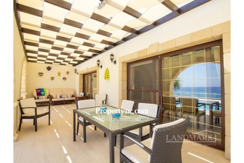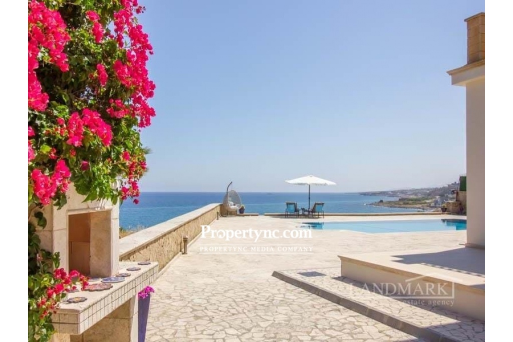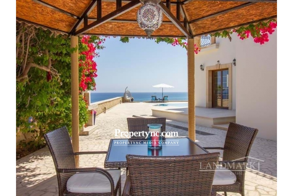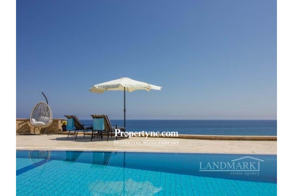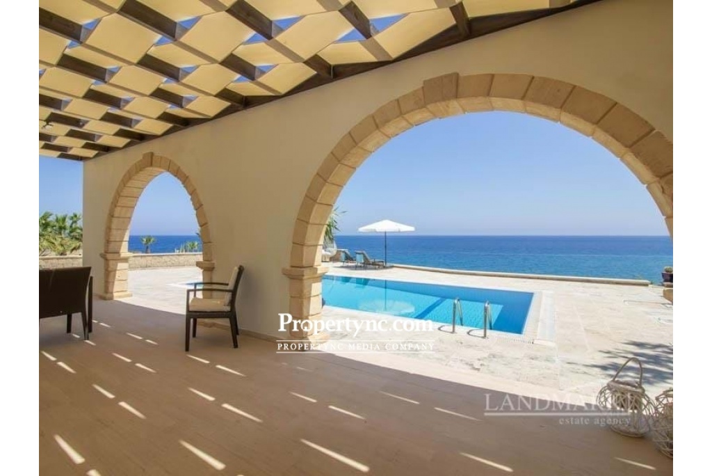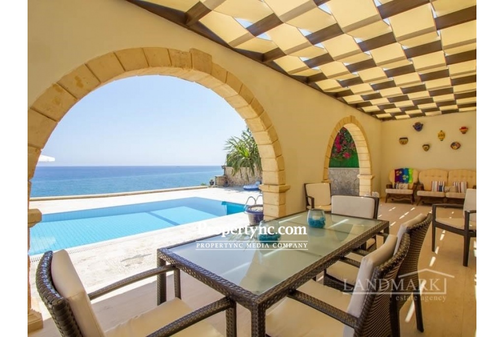 Esentepe is on the North Coast of the beautiful island of Aphrodite in Northern Cyprus. Known for its fantastic beaches, private coves and lovely turquiose crystal clear Mediterranean sea. With mountains to the south, and the stunning sea just a few steps away, the 180 degree panoramic views of the turquoise Mediterranean sea with its incredible sunrises and sunsets, really does encapsulate 'living the dream'. If you love living right next to the sea, you really could not get any closer. The perfect holiday retreat or an incredible permanent residence. Internal Benefits:- High quality natural materials have been used throughout this incredible property - marble, granite and sandstone Solid handcrafted wooden doors throughout Pvc double glazed windows Full gas radiator central heating Central vented air condition cooling system Feature traditional stone archways seperating the dining area and spacious lounge Large curved marble stairway with black wrought iron handrail Natural stone wood burning firepalce for those chillier winter nights Fully fitted kitchen and utility room (incorporating Siemens high quality electronic goods) with solid wood units and granite worktops with views to the sea 4 bathrooms (3 en-suite and 1 family bathroom) - the guest bathroom also has a jacuzzi installed All bedrooms have fully fitted wardrobes providing for a significant amount of storage space. External Benefits:- Private Pool 10m x 5m Solar Panels provide for hot water during the winter months, sea breezes mean little or no air condition used duing the Summer months making this a very eco-friendly property with low running costs There is 10 tonnes of underground water storage to ensure that there is always a water supply available even in periods of drought. External terraces with natural sandstone archways both at ground level and on the first floor provide for both pool and sea gazing, enjoying the cooling sea breeze whilst relaxing to the sound of the waves, drinking an aperitif. The well established, garden has many structured trees (palm and cactus) and is low maintenance. There is an added bonus of an untouchable designated 'green area' to the side of the property, which gives an extra sense of privacy and space. Property Details:- This villa sits on an exclusive site of only 8 villas - with an extremely rare zero to the sea position. The plot size is 1170m2 with an internal size of 297m2 plus terraces of a further 113m2 Location:- This area is has some of the calmest waters - perfect for swimming and fishing, There are several lovely local bars and restaurants dotted along this fantastic coastline, with many venues providing for both international and local live music evenings. A mountain trail is a kilometre away where you can enjoy some of the most exilerating coastline walks with the best scenery anywhere in North Cyprus. Only 20 minutes from Kyrenia Centre with its historic castle, antique harbour, World acclaimed Belapais Abbey where classical music concerts, operas and glamorous weddings are performed. A wide variety of International and local bars, restaurants, and shopping centres. 5 minutes from Korinium Golf and Country Club-Spa. 90 minutes from the famous 'forgotten city' of Varosha, and the mystical ancient ruins of Salamis really do combine to create the perfect setting to live a wonderful life in North Cyprus. This villa is only 30 minutes from Ercan Airport, and 90 minutes from Larnaca Airport, making international travel easily accessible. Panoramic sea and mountain views Plot size is 1170 m2 internal size is 297m2 Surround external terraced areas totalling 113 m2 Completed 2006 bought off plan Title deed in the builders name, VAT to be paid Swimming pool 10m2 x 5m2 Large first floor roof terrace with sea and mountain views 4 double bedrooms (3 with en-suite, 1 family bathroom), and the guest bedroom bathroom has a Jacuzzi Each bedroom has fitted wardrobes Quality fully fitted kitchen with all white goods Central air flow conditioning, gas central heating, pvc double glazed windows, solar panels, generator, water storage very economic villa to run Handcrafted wooden doors, natural granite, marble, and natural sandstone makes this property of a very high quality throughout Open parking area Mature low maintenance garden Untouchable green area next to the property Private stairway directly to the beach - REF: GR1878