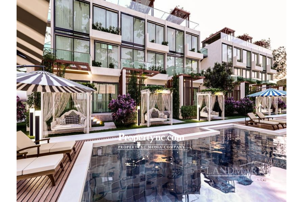 Have a look at this new luxury project located on the outskirt of Esentepe village. The new development will be consisting of 7 blocks of 1-bedroom garden apartments, 2+1 loft penthouses and 4+1 villas. The total plot size of the project is 12,700m2 and it is planted with olive trees. Large communal pools will be located in front of each block of apartments and will give a feeling of an endless vacation. Also, within the project will be built café, childrens playground and suspended viewing terrace over the cliff. Such features as wooden pergolas, fitted kitchen cabinets and built-in wardrobes in the bedrooms, suspended ceilings with spotlights, high-quality plumbing and built-in closets will be included in the price. The advantage of this project is that it is only 350 meters distance from the sea and has marvelous sea and mountain views. 45m2 closed area 20m2 balcony Exchange title deed VAT to pay Completion: 2025 Communal swimming pools Communal garden 1 bedroom 1 bathroom Choice of materials Double glazed windows Suspended ceilings Spotlights Fitted wardrobes Café within the site Childrens playground Parking Maintenance fee: £90 per month Trafo fee: £3,000 Payment plan: - £2,000 reservation deposit for 2 weeks; - 35% down payment; - 20% concrete skeleton; - 20% floors and tiles; - 20% windows and doors; - 5% key handover - REF: 1821c