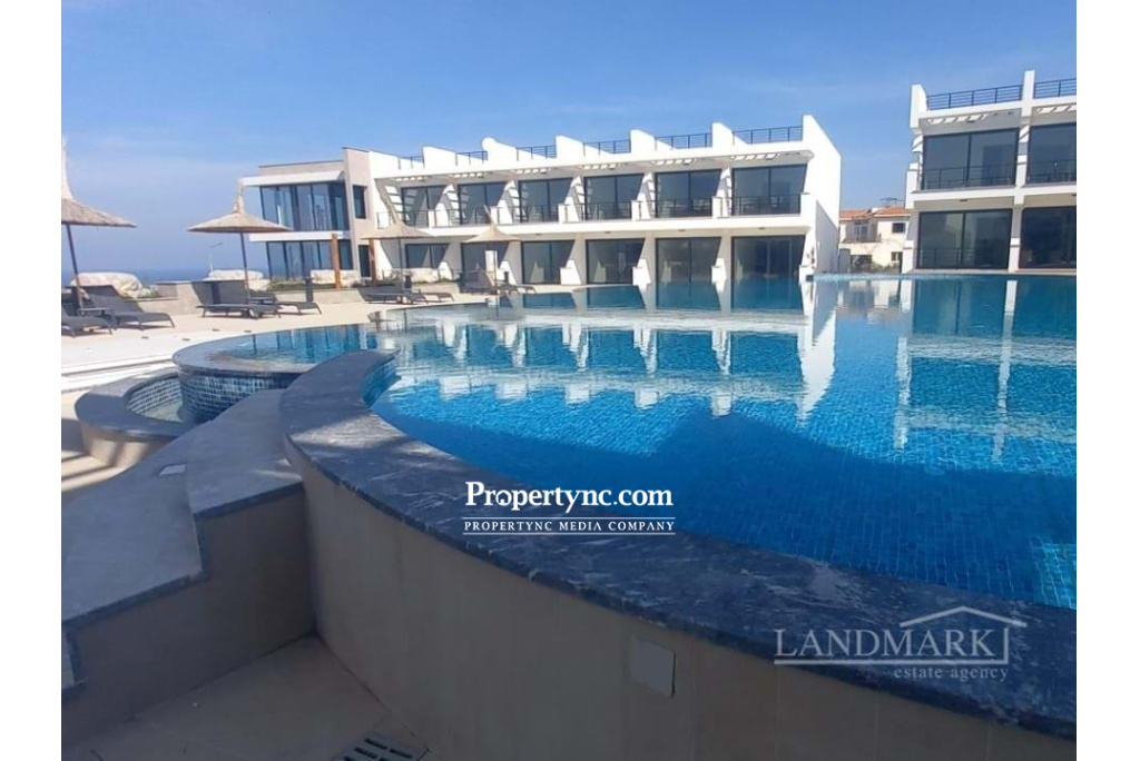 We have for you a studio penthouse apartment in the brand new holiday complex. The site has a total of 156 units of garden and penthouse studio apartments, built by well-known construction company. The apartments have been completed. The complex has a fabulous communal pool which stretches the full length of the site with a shell shaped pool at the bottom, and has plenty of room for sunbathing and socialising with friends and family at the poolside bar. The apartment has amazing 360 degree views from the large roof terrace of both the sea and mountains. In addition, owners of this site can use all site facilities from another complexes of this construction company. Here you will have a free shuttle bus to the world famous Korineum Golf Course and to another famous holiday complex, this is only a short distance away and residents will have access to all the facilities, which include access to a beautiful sandy beach, private beach club, gym, tennis and basketball courts, mini golf, childrens play area, cinema, spa and beauty centre, heated indoor and outdoor pools, mini market and 1st class restaurant. 35m2 internal area 78m2 including terraces Exchange title deed VAT payable Completion: 2023 Communal swimming pool with salt water Children swimming pool Modern fully fitted kitchen Built in floor to ceiling fitted wardrobes Infrastructure for air conditioning Bathroom with large shower cubicle, vanity sink, mirrored wall cabinet Large terrace Large roof terrace-electric-water Pool bar Off road parking Landscaped communal garden Maintenance fee - £60 per month - REF: GR2076