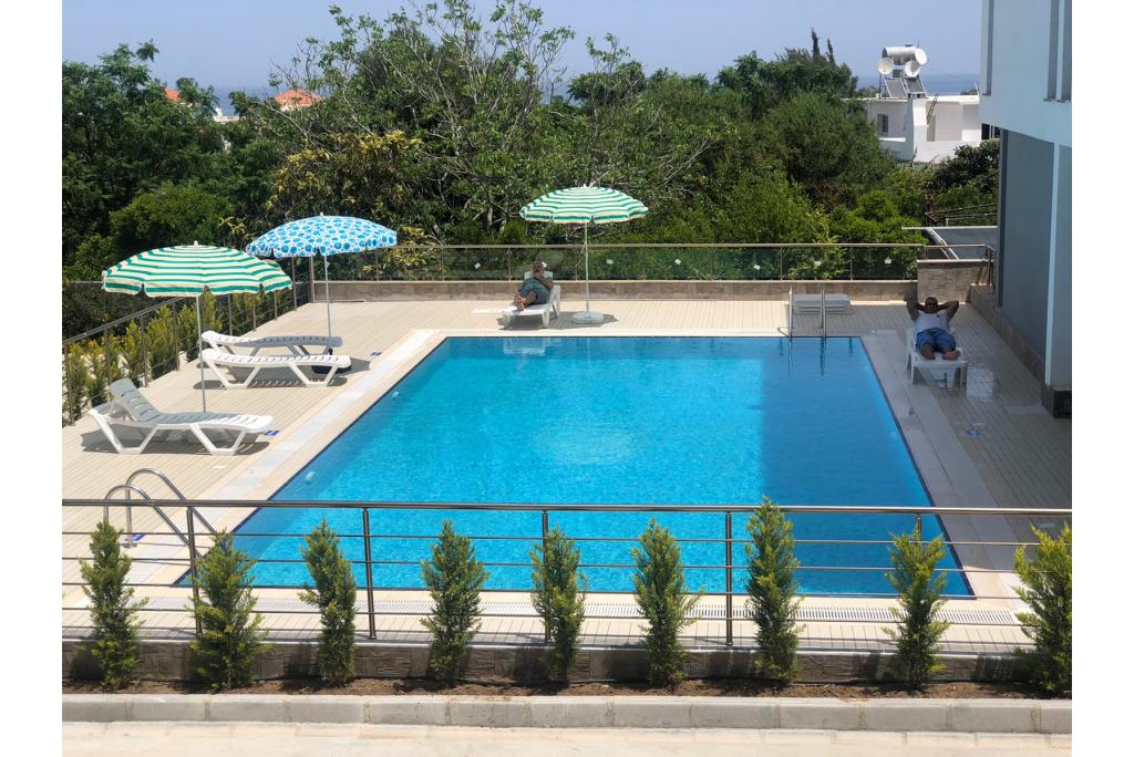 Stunning resale apartment in a very popular complex within walking distance to Lapta Village, Babil gardens and in close proximity to great beaches and popular restaurants of the Lapta Strip. The gated complex is beautifully maintained and includes 24 hour security, communal swimming pool, landscaped garden areas and great views! The apartments are built to a very high standard, with Italian marble flooring throughout, granite kitchen worktops, fitted wardrobes to both bedrooms and a energy efficient Heat Pump system, which provides even heating and cooling from one unit and is 3-4 times more economical than an electric furnace. There is also a central system for hot and cold water, central television antennae and sound and heat resistant insulation throughout. The open plan living room has a rear facing balcony with stunning mountain views to enjoy.