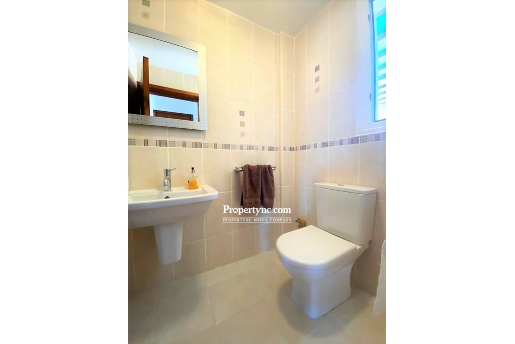 The master bedroom, bed 2 and landing all lead out the fabulous terrace, overlooking the sea and with mountain views to boot. The owners have removed the master bedroom en-suite to create a walk-in closet area but plumbing is there to easily convert back to an en-suite if you choose to do so.