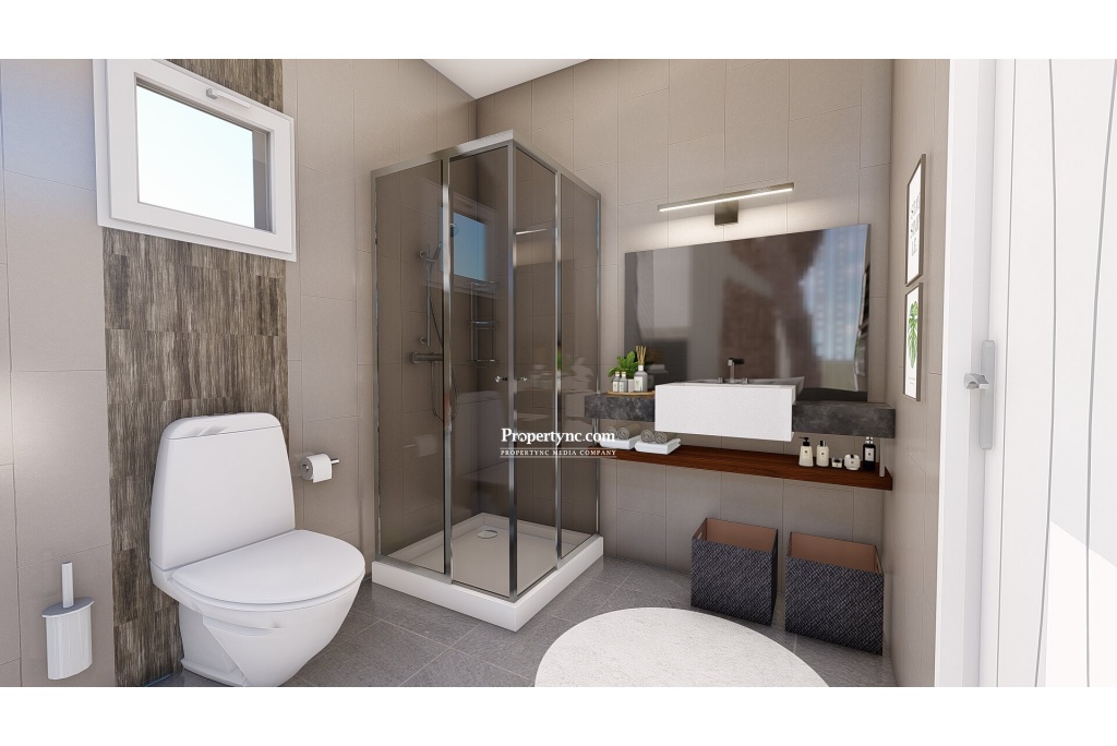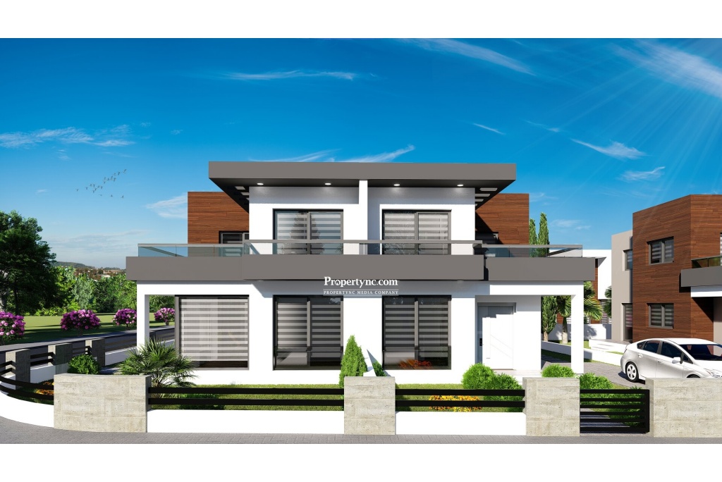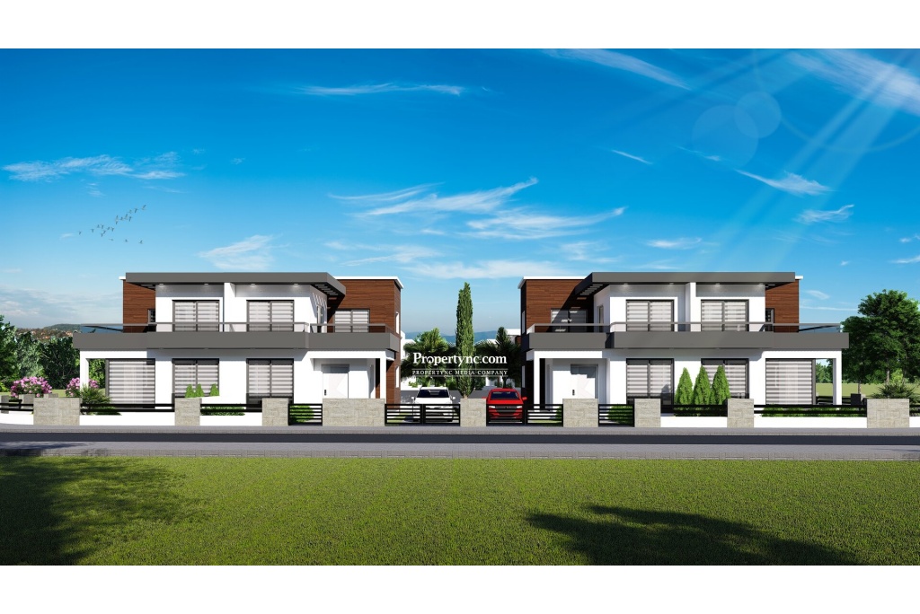Three bedroom duplex twin villas with sea view in Iskele Gardens area. A fully-equipped, modern living space where you can reach all your needs with the common areas within the site. Within 800m walking distance to the sea, there are markets, schools, green areas, cafes and restaurants in the immediate vicinity.There are convenient transport links, with which you can reach any corner of the resort area. The site is fenced and guard.