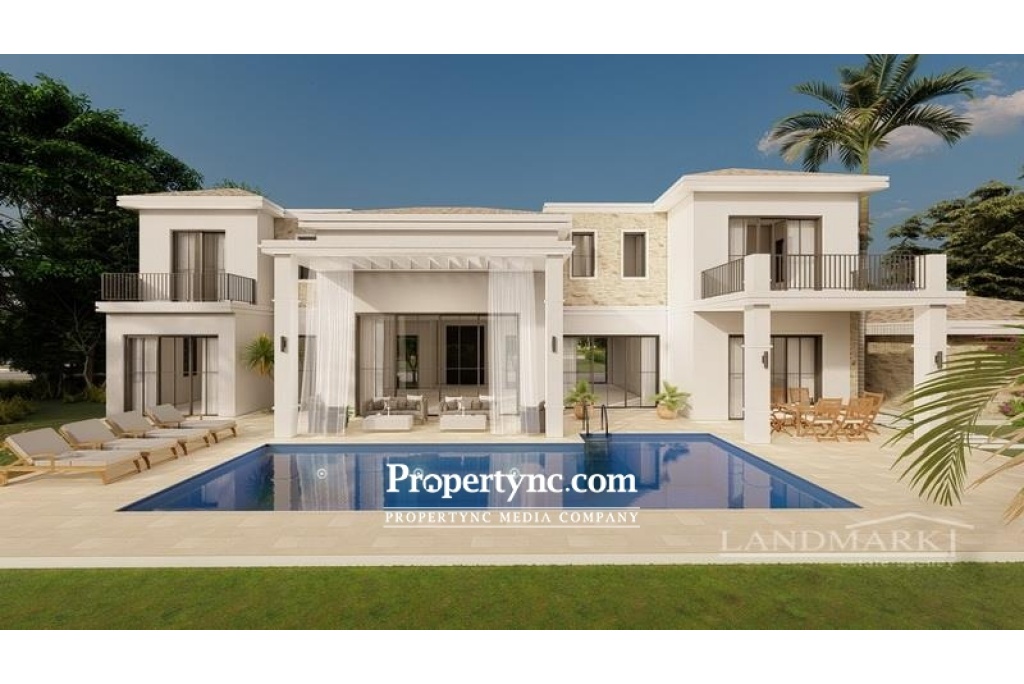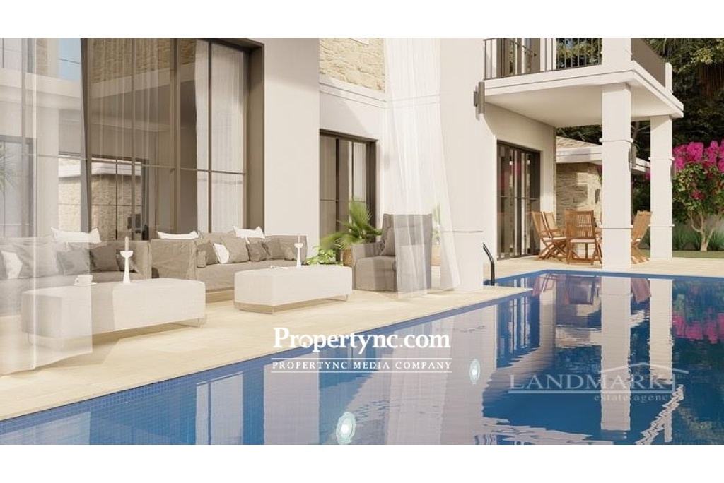 This is an exclusive site of only 7 villas and is located in the most sought-after area of Bellapais. Its location is elevated and built on the side of a beautiful valley with beautiful views over Kyrenia city across to the Mediterranean Sea. On the site, there will be 3 villas of the A type which will all face the valley and there will be 4 villas of the B Type all under construction. All villas will have 4 bedrooms with one bedroom downstairs and all bedrooms will have en-suite bathrooms. Each villa will have under heating and a VRF cooling heating system. They all have a swimming pool, with covered terraces, good size gardens, and a separate garage. The villas are very spacious with a great floor plan. The ground floor will be the main living area almost all year round and this house of lots of terraces to take advantage of this around the pool area. Comprising to the ground floor is an open plan lounge area with a patio door leading out to a big terrace area overlooking the pool. Open plan to dining area and fitted kitchen which will include white goods. The kitchen also has access to a large terrace overlooking the pool adjoining the lounge terrace. Off the hall is 1 bedroom with an en-suite bathroom and a walk-in wardrobe plus a separate guest bathroom. To the first floor are a further 3 bedroom all with en-suite bathrooms and built-in wardrobes and have access to balconies. Every villa has a good plot size to enjoy a spacious private garden area and each villa will have a garage and a swimming pool. Type B 4 bedrooms Ground floor 185m2 125m2 of terraces First floor 120m2 30m2 balconies For type B, 11m x 3.5 4m private swimming pool Plot area from 790 m2 to 960m2 The construction will start June 2021 VAT to pay, plus trafo fee and water and electric connections All 4 bedrooms en suite Lacquered wardrobes Fire place Underfloor heating VRF system heating and cooling White goods (fridge, oven, hob, cooker hood, microwave, dishwasher) Top quality fitted lacquered and wood veneer kitchen Full height suspended ceilings Separate utility room Laundry room Lacquered internal doors Heat insulation aluminium double glazed sliding doors & windows Damp proof insulation Lacquered internal doors Floor material : Light travertine & parquet Wall material : Paint & light travertine Private closed garage for 2 cars Garden top clean soil Boundary walls for each property Site communal road, pavement and lighting Payment plan 30% down payment 25% at the end of carcass structure of construction 25% at the end of brickwork, wall plasters, electrical infrastructure, plumbing infrastructure, sewage system infrastructure, floor screed works and roof works 15% when villa is completed and its surroundings, site roads pavements clean soil finishes 5% on handover B1 villa plot size 790 m2 £595,000 B2 villa plot size 800 m2 £595,000 B3 villa plot size 890 m2 £595,000 B4 villa plot size 960 m2 £595,000 A1 villa plot size 1060 m2 £640,000 A2 villa plot size 1180 m2 £640,000 A3 villa plot size 1050 m2 £640,000 - REF: 1768a