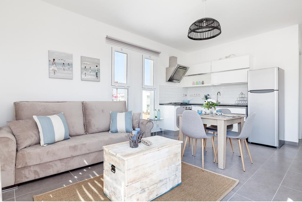 Modern and light 1-bedroom apartment at amazingly affordable price. With access to numerous beaches, opposite the championship Korenium golf course with spa and tennis courts. An ideal choice for North Cyprus property investors and holiday-makers alike.
