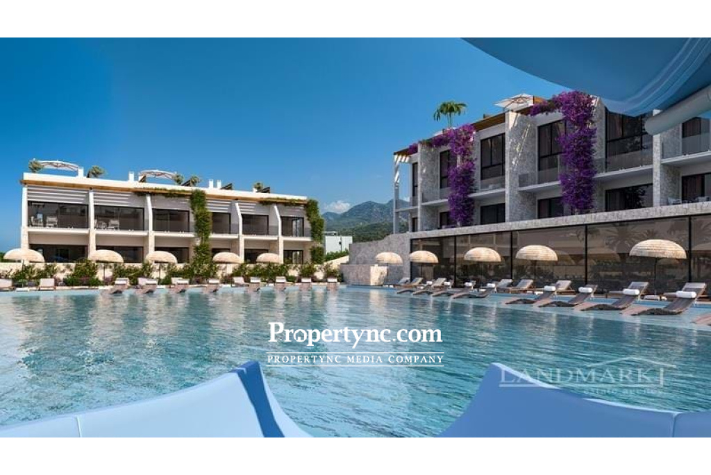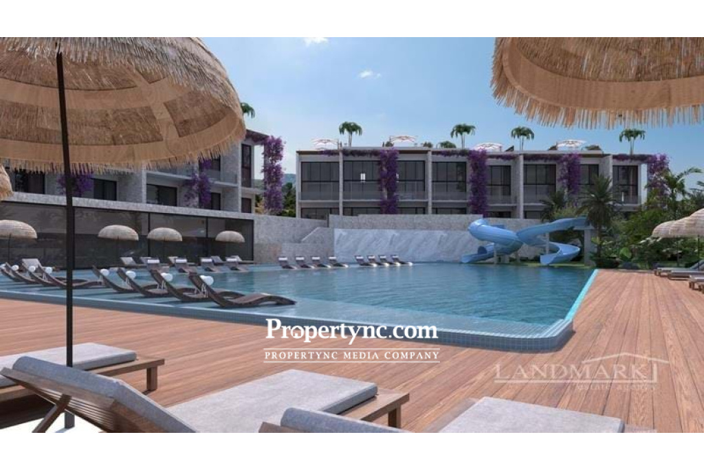 Situated on the captivating island of North Cyprus, this luxurious resort presents breathtaking sea views. Featuring 106 units in 8 blocks, including lavish Studios (34 units), 1-bedroom (36 units), and 2-bedroom (36 units) residences, all meticulously designed for comfort and style, boasting panoramic views of the Mediterranean Sea. Each residence is elegantly appointed with modern amenities for a comfortable and unforgettable lifestyle. The development offers a range of residential units that seamlessly blend modern aesthetics with functionality, promising an exceptional living experience. Expansive balconies and large windows invite residents to fully embrace and appreciate the picturesque sea views from every corner of their homes. The resort boasts infinity swimming pools, including a dedicated childrens pool, where families can relax and rejuvenate while enjoying the stunning sea views. Let the sea mesmerise you as you experience pure relaxation with an enchanting sea view. Enhancing the overall resident experience, the project offers a variety of facilities and services. From scenic walking paths and an outdoor gym to a poolside bar, fast food restaurant, and ice cream shop, as well as a serene meditative garden, spa space, indoor playground, aqua pool, and mini club, there's something to cater to every desire. 106 units in 8 blocks 34 units of studio apartments Ground floor 35m2 closed area 10m2 terrace Total usage 45m2 1st floor with roof terrace 35m2 closed area 5m2 terrace 35m2 roof terrace Total usage 75m2 Competition June 2026 VAT to pay Communal swimming pool Studio 1 bathroom Fitted kitchen with the soft close systems and quality worktops Air conditioning infrastructure Aluminium double-glazed sliding doors and windows Porcelain ceramic flooring in the kitchens and bathrooms 5 year structural guarantee Facilities Walking path Outdoor gym Pool bar Mini club Restaurant Indoor and outdoor playground Fast food restaurant Aqua pool Ice cream shop Mediative garden Access to facilities at the developers other projects via complimentary shuttle Trafo fee TBC Maintenance fee TBC Infrastructure fee £3000 Payment plan £2,000 reservation fee 21 days 35% downpayment 65% until key handover (monthly, bimonthly or quarterly) 1st instalment in June 2024 Management service Gardening maintenance Site maintenance Central Wi-Fi internet for all units Central satellite system Standby generator system CCTV security camera system on site Location Esentepe beach 2 minutes Kyrenia 25 mins Ercan airport 40 mins Larnaca airport 110 mins Iskele 45 mins - REF: 1850d