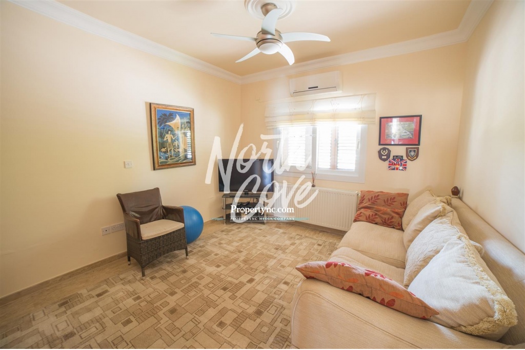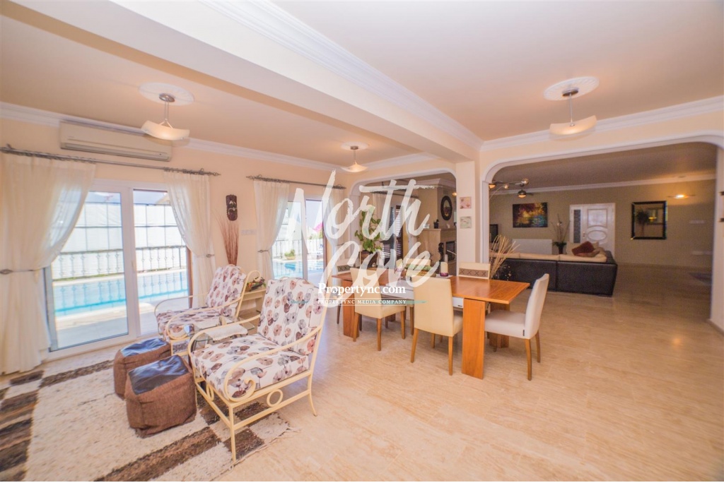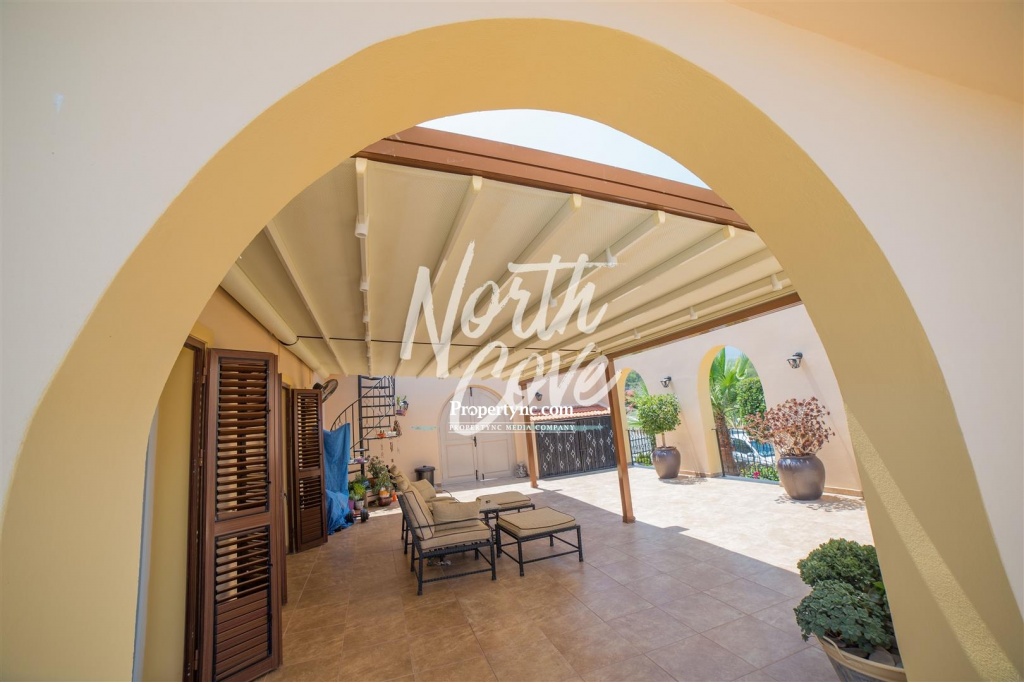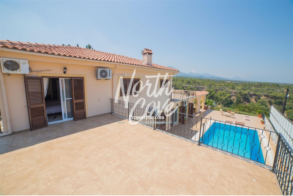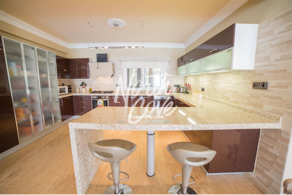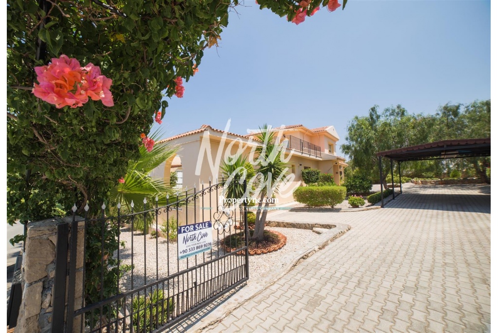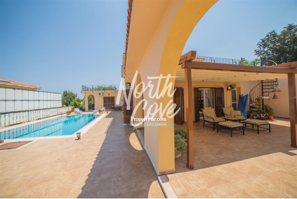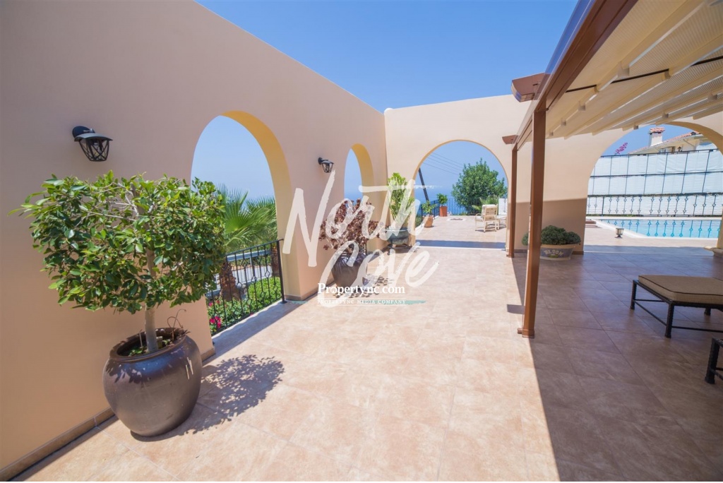 ***MASSIVELY REDUCED PRICE*** Beautifully appointed open plan family home within walking distance to Esentepe village. This large, modern home is cleverly designed and wonderfully spacious, boasting 9-foot ceilings throughout. If you enjoy entertaining, the open-plan living, dining and kitchen areas, which lead out to the generous terrace and swimming pool beyond, all overlooking the Mediterranean sea, lend itself to being a fabulous entertaining space for plenty of guests! All bedrooms are of double size with fitted wardrobes, and there is a luxury en-suite bathroom with large shower and walk-in wardrobe to the master bedroom. This beautiful villa has been completed to a very high specification, with UPVC windows, gas central heating, air-conditioning throughout and marble flooring. The large, established, low-maintenance gardens will keep the "green-fingered" happy all year round.