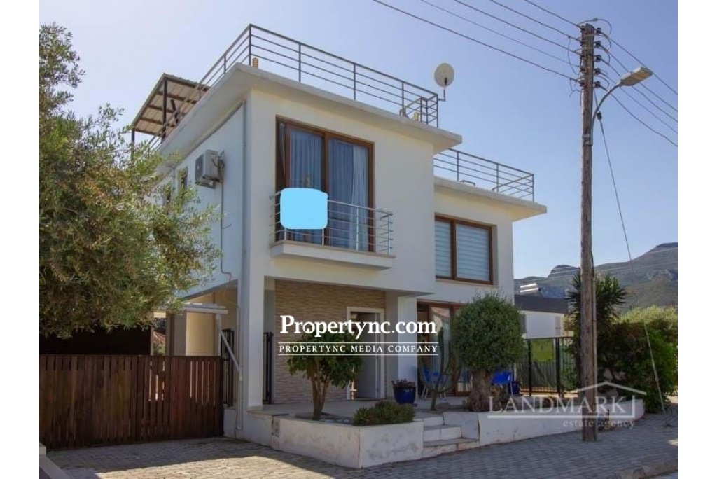This property has Turkish Title Deeds, and currently is a 3 bedroom villa which can easily be configured into a 4 bedroom villa with enough space for a pool to be added. This villa has been improved by the current owners who bought the property off plan 7 years ago. Inside the property are 3 Bedrooms (which can be made into 4 bedrooms), 2 bathrooms (upstairs) and 1 toilet (downstairs), fully fitted kitchen with plumbing for a dishwasher, 2 x air condition units, 2 x electric wall mounted heaters. American pressed doors, piped for central heating, Outside the property is a fully enclosed garden, 2 x sheds, 2 x pergolas, front terrace, large back-side terrace, 2 x Juliet balconies, stunning roof terrace with 360 degree views of both the sea and surrounding mountain range - great for those long lazy warm summer evenings watching the sun set. Car port which can be made into a garage just by adding a door. Low maintenance gardens with structured trees & shrubs, olive, orange and cactus trees, Location:- Great location on the outskirts of the village of Ozankoy, 10 minutes from Kyrenia city centre, home of the antique harbour, historic castle, and Bellapais Abbey. Near to many local beaches, hotels, bars and restaurants. 40 minutes to Ercan Airport, 90 minutes to Larnaca International Airport. 150m2 internal area Surround terraces plus panoramic view roof terrace Completed 2015 Turkish Title Deeds Ready, (shared title deeds) VAT to be paid by the owner 3 bedrooms 1 on ground floor, 2 on the first floor with potential to extend into 4 1 en suite one family bathroom 1 W C on the ground floor Bedrooms have fitted wardrobes Fully fitted kitchen 2 x Electric wall mounted heaters Air conditioning x 2 5 tonnes of water storage Open garage Enclosed back garden Mature established low maintenance garden - REF: GR1864
