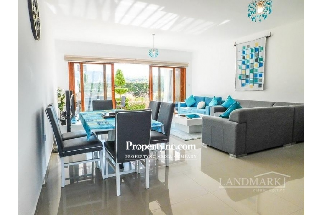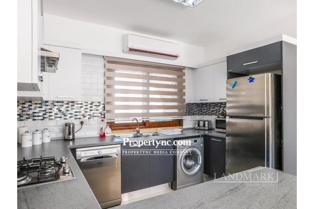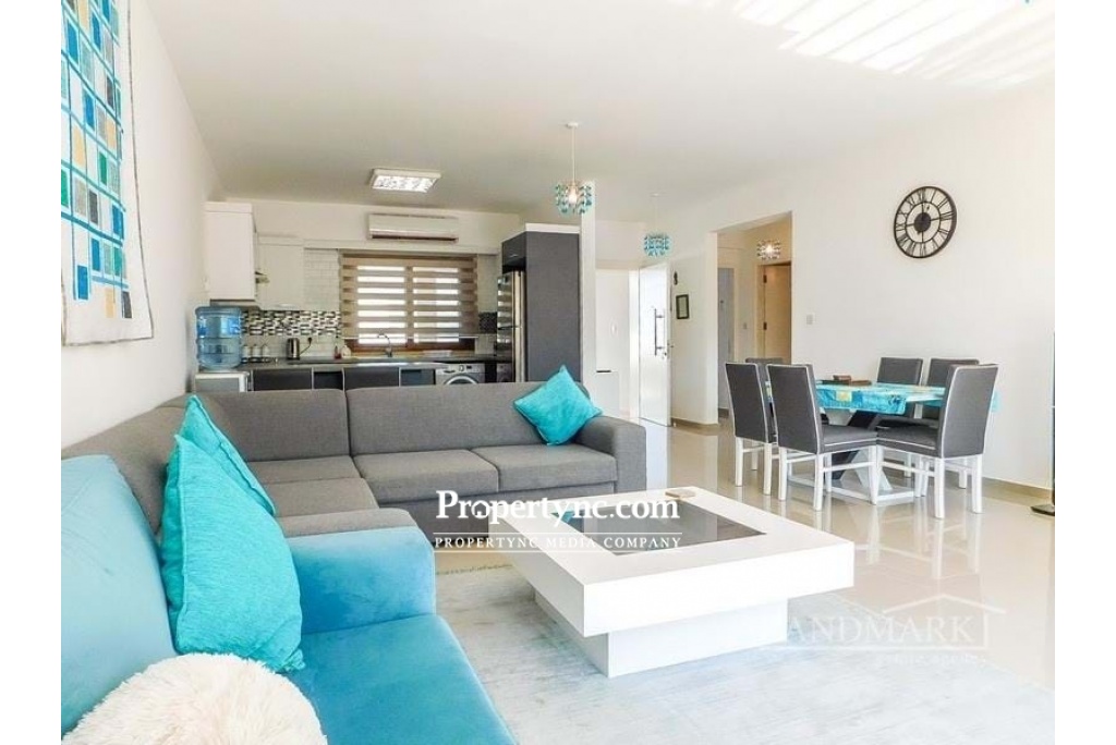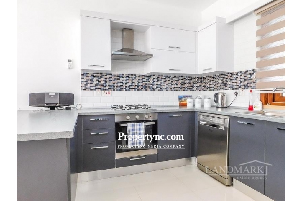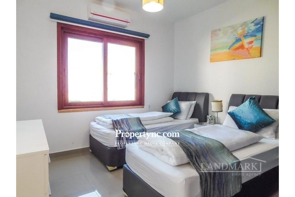 This apartment is a part of a beautiful luxury estate consisting of 4 apartments in each block all sharing a communal pool. This lovely garden apartment is a fantastic opportunity to purchase a holiday home for luxury living at an affordable price. The apartment has a spacious open-plan kitchen and lounge and offers easy access to the terrace and one of the on-site swimming pools just a few meters away. The kitchen is fully fitted including all Hotpoint appliances. There are 2 double bedrooms one with en suite bathroom and one with a sea view. This apartment has high quality furniture included in the price. Air conditioning units are throughout and wardrobes are fitted in both bedrooms. The site benefits from two overflow communal pools, beautiful landscaped gardens, a gym, spa, restaurant, children playground and tennis court and has a property management office. It is a place to relax, a place to enjoy peace, quiet and relaxation. The site is about 20 minutes drive from Kyrenia and situated around the corner from Korineum Golf course. 105m² internal size 15m2 terrace Communal swimming pools Exchanged title deeds Title deed ready to transfer, 5% VAT payable Fully furnished (except personal items) 2 bedrooms with built-in wardrobes Master with en-suite shower Family bathroom with shower Modern fitted kitchen units with white goods Air conditioning x 3 Parking space in front of the block Beautiful large communal garden with a mix of plants and trees Fully equipped site (gym, sauna, restaurant, children play area) Property management office on site Shuttle service to nearby beach Maintenance approx £125 - REF: 208p