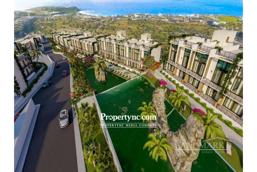 This brand new mountainside development will allow you to experience diversity of relaxation from the thriving Five Finger Mountains and the magnificent scenery of the Mediterranean Sea. Luxury, privacy, tranquility, relaxation, comfort and modernity are what you will find in this project. The quiet atmosphere amidst verdant nature and fresh air reinforces the concept of health and well-being on which the project is built on. The development consists of 655 residential units. It also takes full advantage of on-site medical clinics and facilities for fitness sessions, wellness workshops, yoga, meditation and massage. The nature walks and cycling routes are also there for those seeking a piece of mind in this natural environment. What else can body and mind ask for? 75m2 internal area 10m2 terrace 50m2 roof terrace Exchange title deed 5% VAT payable Completion: March, 2027 Communal pools Indoor heated pool 2 bedroom LOFT penthouses 1 family bathroom 1 en-suit in the master bedroom Damp proof course Construction concrete Climate and Water Insulation Roofing Interior Flooring Ceramic (Choice of colors) Exterior Flooring Non-Slip Fitted kitchen (Choice of colors) Fitted wardrobes in all bedrooms with respect to dimensions in plan (Choice of colors) Double glazed windows Interior Doors Exterior Doors and windows Main Entrance Door (Wood) Designated parking space Air-conditioning infrastructure Five years structural guarantee Trafo fee: £3,000 Property management service Gym Hamam Sauna SPA Tennis court Beauty center Restaurant Walking paths Cycling and hiking routes Dentist Healing yoga Clinics Payment plan: £2,000 - reservation for 2 weeks or £5,000 reservation for one month; 35% down payment; Remaining 65% payable starting March, 2024 Monthly Bimonthly Quarterly Until key handover March, 2027 - REF: 1345m-2