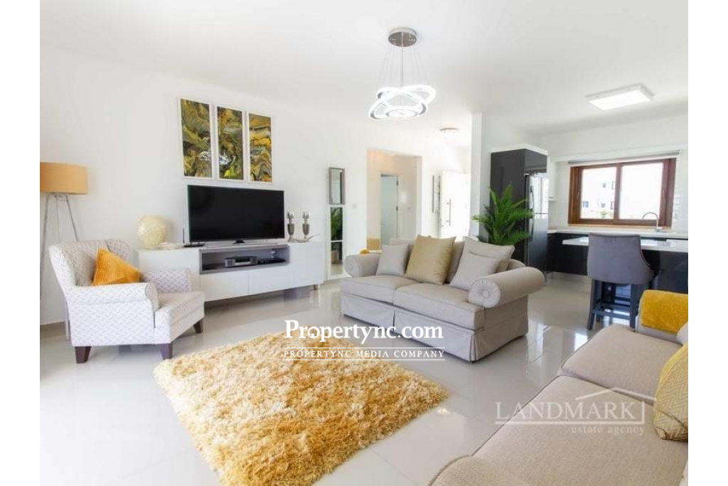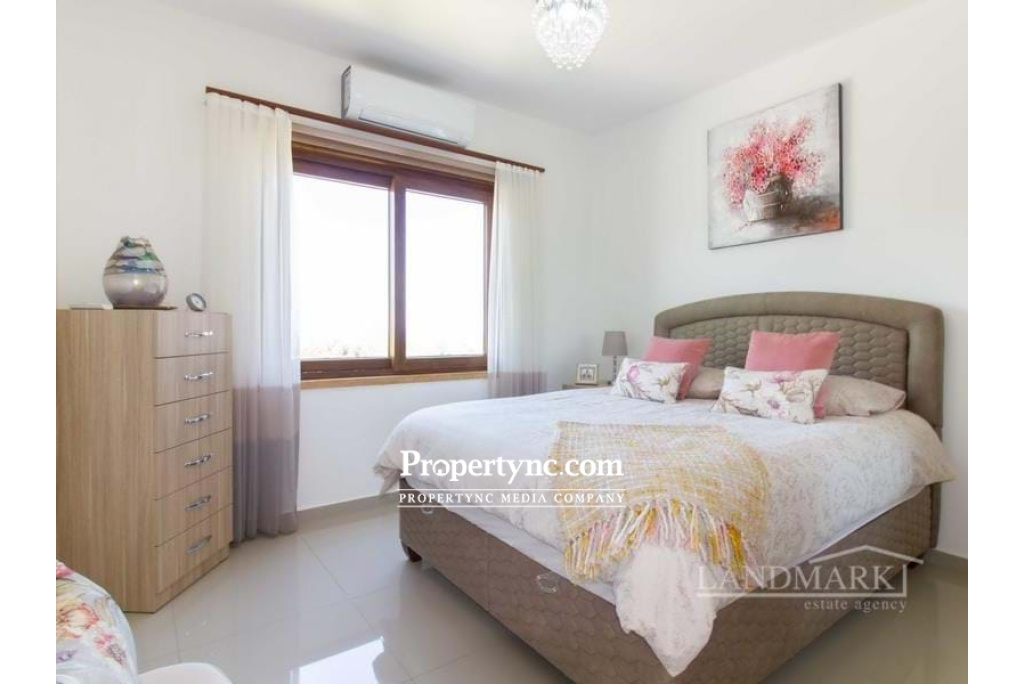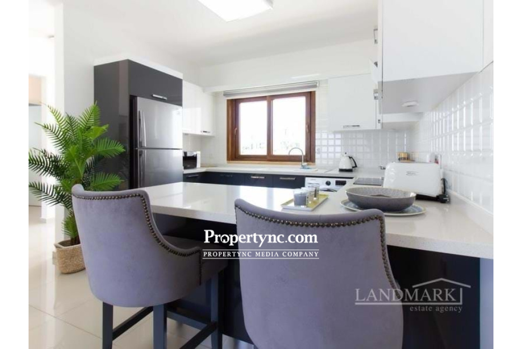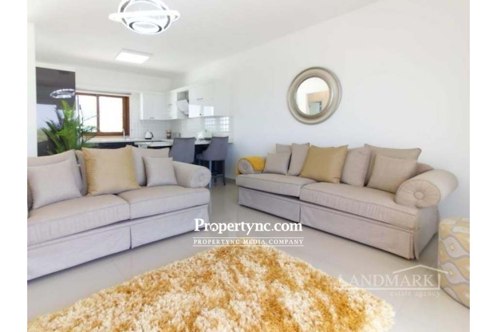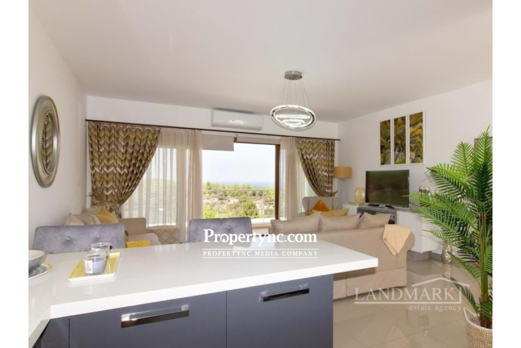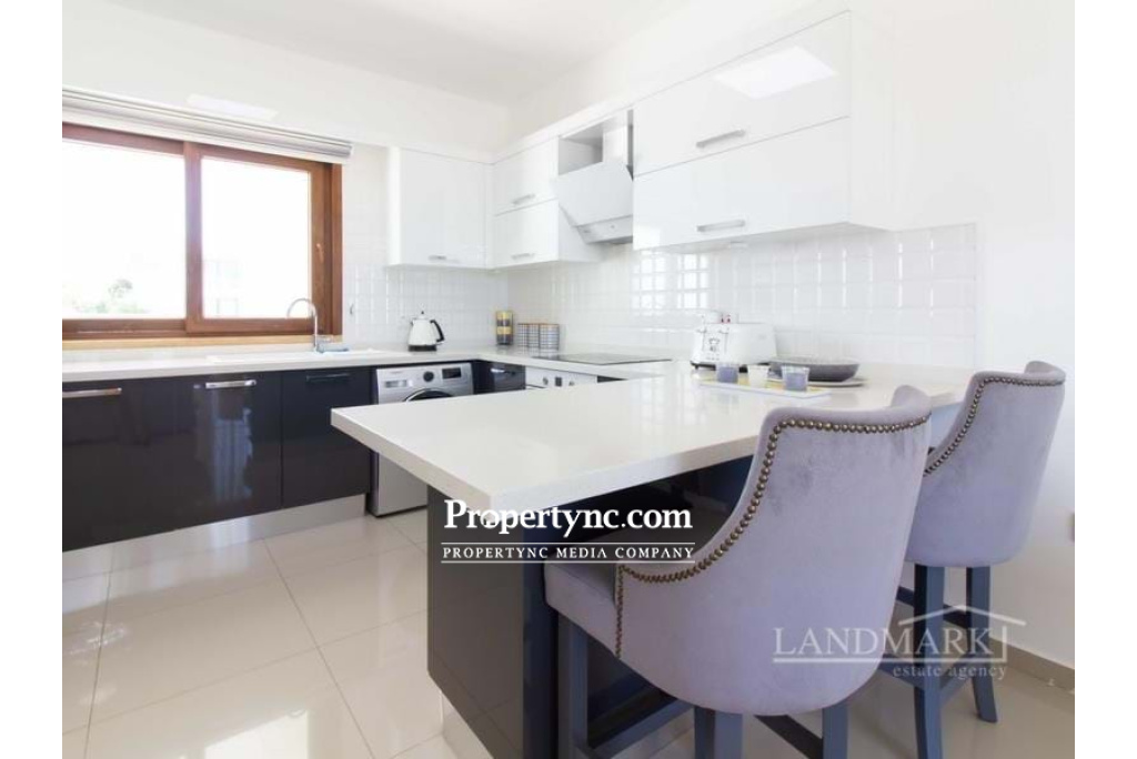 This beautiful Penthouse is situated in a quiet and picturesque holiday complex near the sea, surrounded by pine forest. The penthouse has two cosy bedrooms, all with fitted wardrobes. The master bedroom is an ensuite. It has a wonderful view of the swimming pool, garden, sea and mountains. The lounge is nicely furnished. It has big patio doors leading to a balcony with garden furniture, it has an amazing view of the pool, landscaped garden, sea and mountains. The modern open plan kitchen has fitted kitchen units with white goods and quartz worktops. The penthouse has a large private roof terrace with wonderful views. It can be used for sunbathing, meeting with friends, and having BBQ. This property is a part of a beautiful luxury holiday complex situated in a hilly part of mountains surrounded by pine forests. The complex is located not far from the sea and has a well equipped private beach. The site benefits from two overflow communal pools, heated pool, beautiful landscaped garden, a gym, spa, restaurant, children playground and tennis court and has a property management office. It is a place to relax, a place to enjoy peace, quiet and relaxation. The site is about 20 minutes drive from Kyrenia and situated around the corner from Korineum Golf course. 100m² internal size approx. 6m2 balcony approx. 65m2 roof terrace Communal swimming pools Exchange title deed Title deed on owners name, VAT paid Fully furnished 2 bedrooms with built-in wardrobes Master with en-suite shower Family bathroom with shower Fitted kitchen units with white goods Quartz worktops 3 new air conditioners Parking space in front of the block Beautiful large communal garden with a mix of plants and trees Full equipped site (pool, heated pool, gym, sauna, spa, restaurant, children play area, beach) Property management office on site Shuttle service to nearby beach Optional: garage for £15,000 - REF: 208r