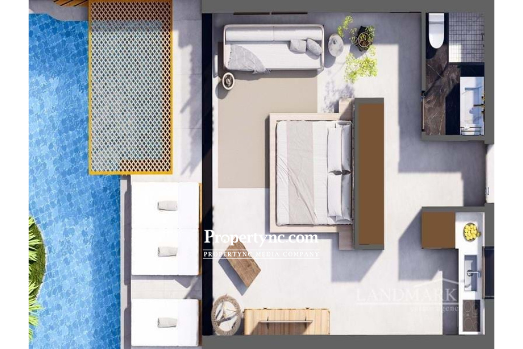 This outstanding and brand-new project will provide modern and comfortable living spaces to its residents. The project will be situated on a vast land of 26.260m2 and will consist of 1+1 and 2+1 apartments, studio-bungalows and villas. Each living space will be designed with contemporary and luxurious touches, which will give residents the feeling of a home, away from home. The project will also feature three stunning sandy swimming pools that provide residents with the ultimate relaxation. Additionally, to cater to residents' recreational needs, the development will also come equipped with a tennis court, open area cinema, and childrens playground. For those who are looking to keep up with their fitness regime, the project will have a state-of-the-art gym and open fitness areas to maintain an active lifestyle. The residents can also pamper themselves by heading to the sauna and spa for an ultimate relaxation experience. There will be a restaurant in the middle of the pool that will provide residents with a unique dining experience while enjoying the view of the pool. This project is a perfect blend of utmost comfort, luxury, and convenience. The complex will be designed to cater to all the needs of its residents and to provide them with an unparalleled living experience. It is located just in 2-minute drive to the beach, a 30-minute drive from the city center of Kyrenia, a 55-minute drive from Ercan Airport and a 5-minute drive from the markets, pharmacy and restaurants. 38m2 closed area 7m2 balcony 38m2 roof terrace Exchange title deed VAT to pay Completion: October, 2026 Communal sandy and classic swimming pools Communal gardens 1 bedroom 1 bathroom Choice of materials Double glazed windows Suspended ceilings Spotlights Fitted wardrobes Restaurant near pool Childrens playground SPA Open air cinema Gym Tennis court Parking Payment plan: 2,000 GBP - Deposit for 2 week reservation 35% - Down payment (with the registration of the Contract at the land registration office) 20% - Concrete skeleton 20% - Floors and tiles 20% - Doors and windows 5% - Key handover TAX VAT - 5% ( May change due to the law) Stump tax - 0,5% (It is paid within 21 days after signing the Sale contract) (May change due to the law) Transfer of the Title deed - 12% (May change due to the law) TRAFO Fee - 2500 GBP Maintenance - 90 GBP (Apartments) 120 GBP (Villas) - REF: 1821d-2