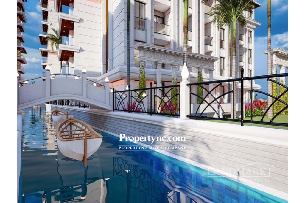 Luxury and modern 2 bedroom apartments and penthouses + communal swimming pools + indoor swimming pool + gondola canal + SPA + massage rooms + gym + basketball court + aquapark + 5 restaurants + roof bar + shopping mall + amphitheater + payment plan