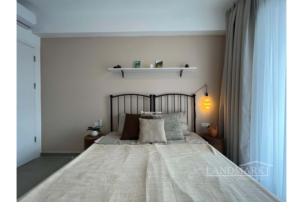 This is a brand-new project located in the beautiful Esentepe region of North Cyprus. It is located just 150 metres from the sea and the beach. The apartment includes a fully fitted kitchen, ceramic flooring, inverter air condition units, bathroom fittings, floor to ceiling fitted wardrobe, white goods and high-quality faucets. The project includes social facilities such as a communal swimming pool, restaurant and roof bar, as well as botanical landscaped gardens. In addition, all residents will have access to numerous activity areas and services such as Beach, Beach Bar, Amphitheatre, Fish and Steakhouse, tennis court, Paddle tennis court, Organic Garden, Indoor Swimming Pool, Outdoor Heated swimming pool, saltwater pool, Sauna, gym, Yoga and Pilates room, massage rooms, conference room, Mini Market and concierge services for the use of amenities at the developers other sites. 68 m2 internal area 12 m2 terrace Completed 2023 Exchange title deed Vat to pay Communal saltwater infinity pool with sea views 2 bedrooms with fitted wardrobes 1 en-suite in the master bedroom 1 family bathroom Floor-to-ceiling wardrobe in one bedroom Fully fitted double-sized kitchen Ceramic flooring Inverter air conditioning x3 Integrated hanging toilet system Central automatic standby generator system Landscaped communal botanical gardens Sea access, restaurant and beach bar, court access Private roof terrace with tiles, barbecue, sink and shower infrastructure 1 km to Korineum Golf Course Car parking place - REF: 208m-9
