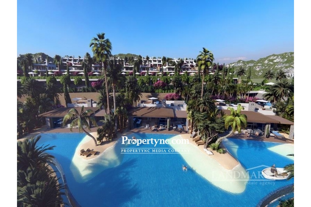 This unique and incomparable project will be consisted of 393 units in total. There will be 11 (4+1) sea front villas with swimming pool or private beach on your choice. On the site will be a free shuttle service going to the Golf course and another seafront projects of the same builder, which is located only a few min away. But, unlikely happy owners of this properties will want to leave the complex, because it will have all necessary things, such as markets, grocery store, pharmacy, play grounds, gym, exchange office, SPA and wellness center and a few communal swimming pools, including indoor heated pool. The complex will have a property management service consists of rental management, house-keeping services, airport transfer, car rental service, laundry service, repair works, bike club and ATV tours. 4+1 beach villas 157m2 internal area + 66m2 terrace + 75m2 roof terrace 1 family bathroom and 3 en-suits Option to choose private pool or beach Exchange title deed 5% VAT payable Completion date: 2025 Indoor heated pool Fitted wardrobes choice from a selected range Choice of colors for kitchen cupboards Aluminum double glazed windows Walking distance to the beach Property management service Free shuttle Car rental service Market and Grocery store Exchange office Pharmacy Gym SPA and Wellness center 5 min drive to Esentepe village 3 min walk to the Pharmacy 10 min drive to Korineum Golf Club 30 km to Kyrenia city center 45min to Ercan Airport and 1 hour 10min to Larnaca Airport Construction of this project will begin at the end of 2022. Completion date is expected in the end of 2025. Stage payment Plan: - Deposit £2000 £5000 to reserve for 2 weeks 4weeks; - 35% on signing of the contract in 1 month; - 20% on completion of foundations; - 20% on completion of framework; - 20% on completion of brickworks and plastering; - REF: 1345h-6