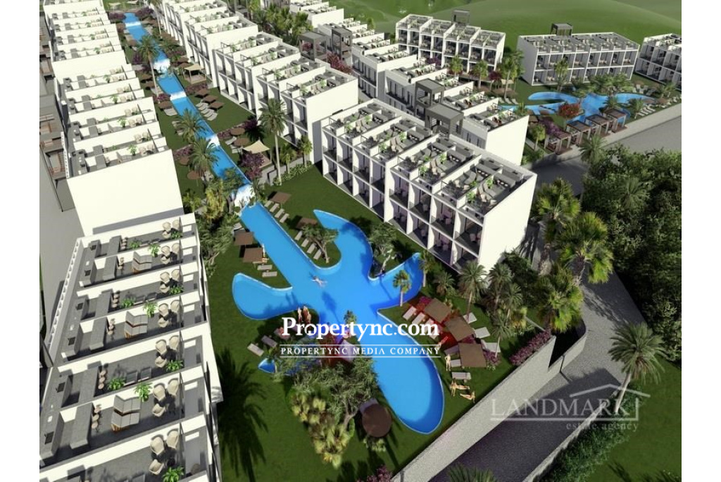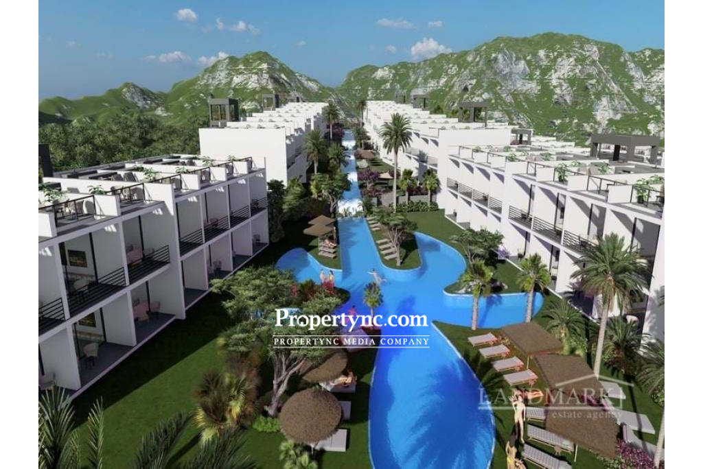 This unique and incomparable project will consist of 701 units in total and this is a resale, off-plan apartment we are offering for sale. On the site will be a free shuttle service going to the Golf course and another seafront project of the same builder, which is only a few min away. But, unlikely happy owners of these properties will want to leave the complex, because it will have all the necessary things, such as markets, grocery store, pharmacy, playgrounds, gym, exchange office, SPA and wellness center and a few communal swimming pools, including an indoor heated pool. The complex will have a property management service consisting of rental management, housekeeping services, airport transfer, car rental service, laundry service, repair works, bike club and ATV tours. Off plan studio penthouse apartment 35m2 internal area + 8m2 terrace + 35m2 roof terrace 1 bathroom Exchange title deed 5% VAT payable Completion date: 2026 Communal pools Indoor heated pool Fitted wardrobes Aluminum double glazed windows Walking distance to the beach Property management service Free shuttle Car rental service Market and Grocery store Exchange office Pharmacy Gym SPA and Wellness center 5 min drive to Esentepe village 3 min walk to the Pharmacy 10 min drive to Korineum Golf Club 30 km to Kyrenia city center 45min to Ercan Airport and 1 hour 10min to Larnaca Airport - REF: 1345h-9