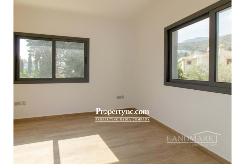 These new modern 4 bedroom villa is located in the calm and tranquil part of the popular Alsancak area. The site is surrounded by a green ravine and benefits of breath-taking mountain and sea views. There are 3 villas in the site and 1 is left available for sale. The ground floor comprises of an open plan living room with a fire place accessing a terrace overlooking a large plot of 1200 m2. On the ground floor there is also a modern open plan kitchen with a spacious dining area, one bedroom with a fitted wardrobe and a family bathroom. A beautiful staircase with aluminium railing and marble tiles is leading to the upper level. To the first floor there are three bedrooms with wardrobes accessing a large terrace. The master bedroom benefits of an en-suite bathroom. The other two bedrooms are sharing a family bathroom. A staircase on the terrace is leading to a spacious roof terrace with fantastic views to the sea and mountains. This place invites you to enjoy the mild weather all year around! The location of the property is only a short distance drive to Kyrenia and local beaches. A modern designed home, ready to move in! 3 villas, 1 left for sale 200 m2 internal area 250 m2 terraces and roof terrace 1200 m2 plot size approx. VAT payable Completed in 2020 4 bedrooms with fitted wardrobes and balconies 3 bathrooms 1 en-suite bathroom Fully fitted kitchen Granite worktop Inverter air conditioners Open fireplace Ceramic and marble floors Modern bathroom fittings and accessories Large roof terrace Aluminium double glazed windows Paved car park area Stone wall all around the property 3 tons of water storage - REF: 1730a