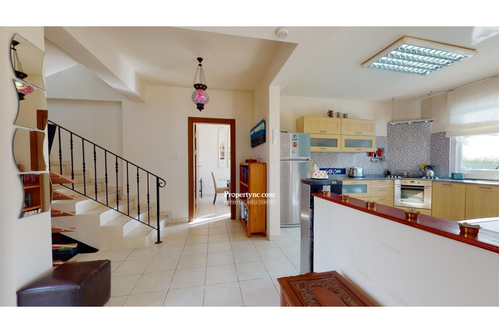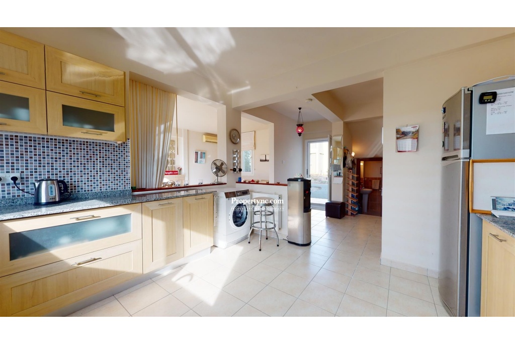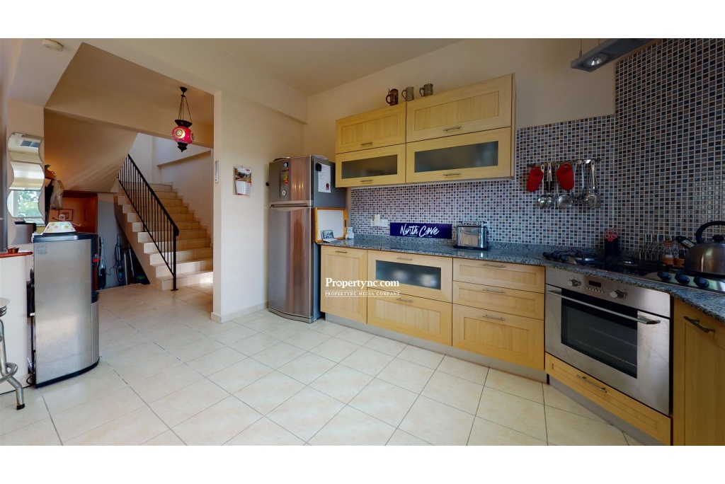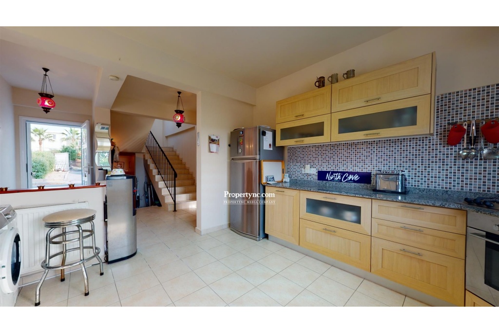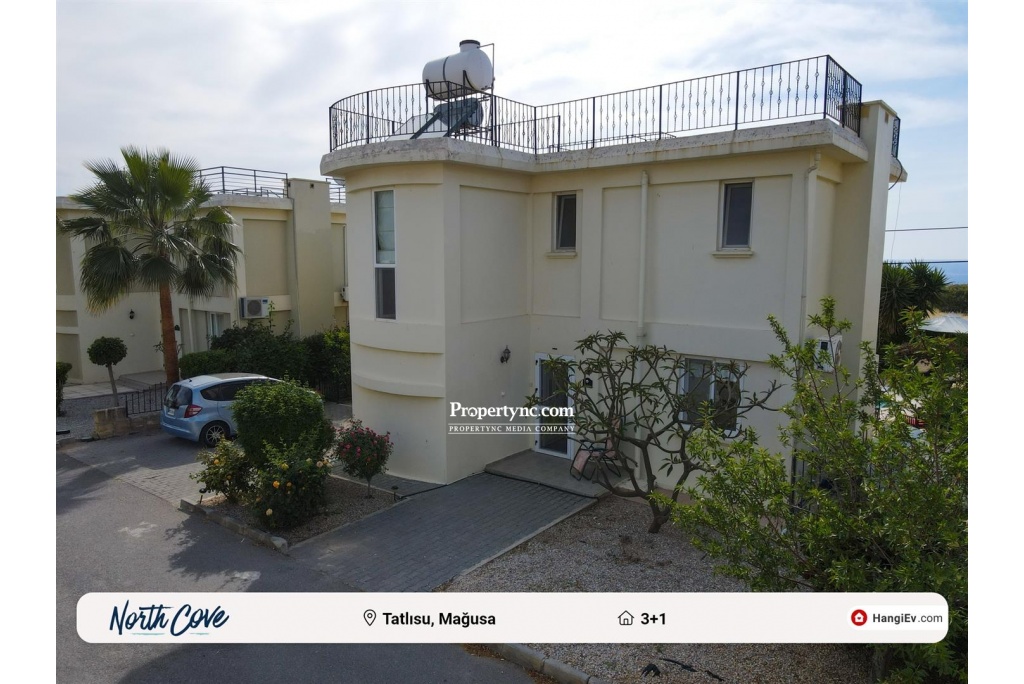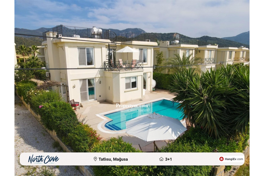 North Cove are pleased to offer to the market this beautifully presented, fully furnished, 3 bedroom villa, with a private pool on a sought after development in Tatlisu. Boasting breath-taking sea and mountain views, a low maintenance garden and private roof terrace, this property is an opportunity not to be missed!Upon entering the property you are greeted with a large, U shaped kitchen which boasts modern white goods and a top quality Frankie hob and oven. Set to the right of the kitchen is the living room, with patio doors leading out to the garden, creating a light and airy main room. To the left of the kitchen is a guest bedroom, which is currently used as a dining room, however has ample space to be transformed into an accessible downstairs bedroom. There is also a WC to the ground floor and space for storage under the stairs. The first floor boasts 2 large double bedrooms with beautiful sea views, built in wardrobes and the master bedroom benefitting from an en-suite with a walk in shower. There is also a large family bathroom, again featuring a walk in shower and towel heater. The first floor also has it's own private terrace, with views straight onto the sea and a spiral staircase leading up to the roof terrace, which offers magnificent 360 degree views of the natural surroundings, from the mountains to the sea, you are truly spoilt for views in this location.The villa has recently been redecorated and has central heating throughout, including towel heaters in the bathrooms, inverter air conditioning units and fully functioning fire place. All rooms are fitted with fly screens, allowing you to take advantage of the wonderful mountain breeze and reduce your dependency on the air conditioning during those hot, summer months. With a patio area in the back by the pool, this villa is ideal for entertaining and alfresco dining.Call now to arrange your viewing and avoid disappointment.Live your best life!