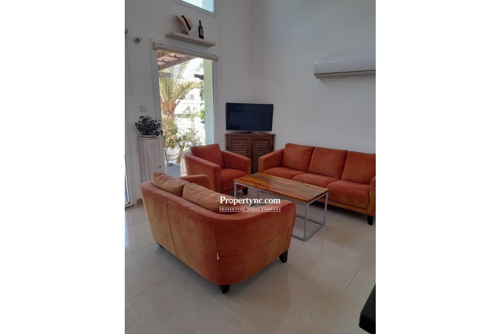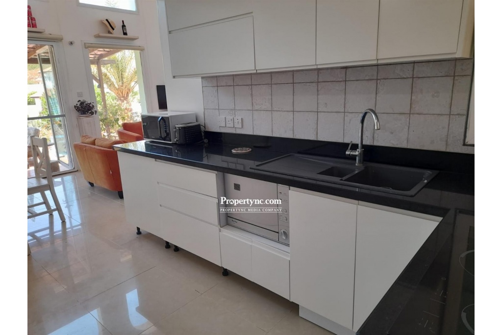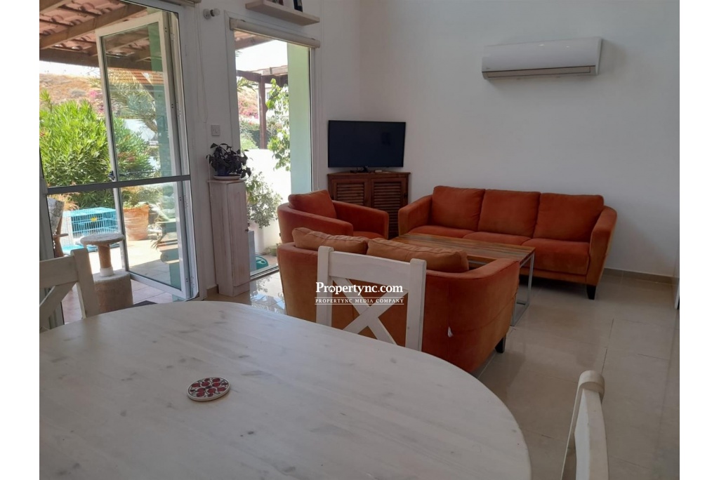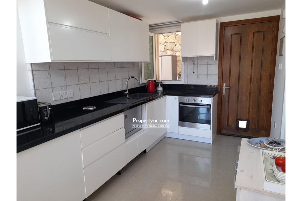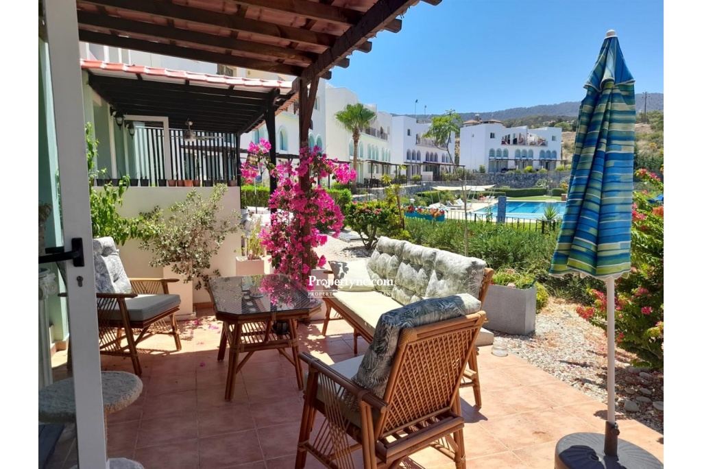 North Cove are pleased to welcome to the market this 2 bedroom garden apartment situated in the picturesque village of Bacheli. The ground floor consists of a modern, open plan kitchen-living room, with built in appliances and large south-west facing windows allowing for ample natural light to flow through the rooms. There is also a double bedroom to the ground floor with built in wardrobes and a separate, making the property ideal for guests whilst allowing privacy with both floors having all necessary features. On the mezzanine level is the master bedroom, which is a large room with arched windows on the inside allowing for privacy whilst also allowing the natural light to seep through and showing off the beautiful mountain backdrop. The master bedroom has a ceiling fan and built in wardrobes with a separate bathroom. The property is airconditioned throughout and is offered fully furnished, with all white goods included. On site facilities include a popular restaurant, a tennis court, 3 swimming pools and direct access to the sea.About the area:Set to the East of Kyrenia, leaving behind the hustle and bustle of Girne lies the beautiful village of Bahceli, the gateway to the Karpaz region. Boasting an abundance of unspoilt, under developed land and beaches, Bahceli gives you a true taste of the laid back North Cypriot lifestyle, allowing you to truly be at one with nature. Bahceli boasts many mountainous hiking trails as well as incredible costal walks, with an abundance of restaurants allowing you to indulge on local and international cuisine!