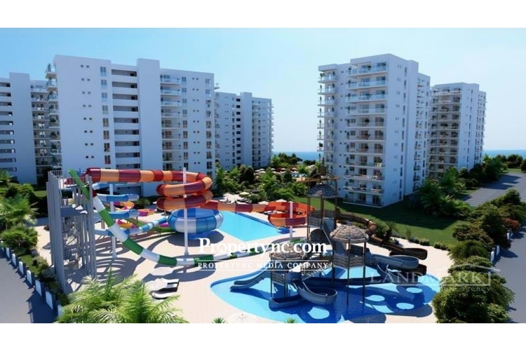 Off plan 1+1 apartments + communal swimming pools + aqua park + restaurant + walking distance to the sea + 4 years interest free payment plan