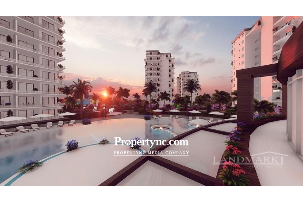 Undoubtedly, the complex is located in a very comfortable location. Only 300 meters from the beach, 40 minutes drive from Ercan Airport and 45 minutes drive from Larnaca Airport. Touristic and historical cities, such as Bafra and Famagusta are 15 minutes drive from this development. This modern site will have 5 blocks in a first stage with 310 apartments in total which consists of 112 studio apartments, 105 (1+1) apartments, 90 (2+1) apartments and 3 huge penthouses. In the 5 blocks being built there will be 105 (1+1) apartments in this luxury residential complex. Each 1+1 apartment will has an open plan living area combined with a kitchen and one cozy bedroom. An internal area of the apartments is between 60m2 71m2 and each apartment will has a 12m2 - 25m2 balcony with stunning views on the Mediterranean Sea. Onsite facilities include: Large aqua park Outdoors pools Indoor heated pool Gym Sauna steam room Jacuzzi Childrens playground Green areas Sports grounds Restaurant BBQ zone Parking Bicycle and car rental Other apartments available on the complex: 112 studio with 50m2 60m2 90 (2+1) with 85m2 91m2 3 penthouses with 178m2 Flexible terms of the payment plan: For ready blocks: 30% down payment with 48 months no interest fee If Rental Guarantee for 1st ready block: full cash + design pack If Cashback and Rental Guarantee for 2nd ready block: 50% Down Payment , rest till key, starts in a month after 50% + design pack For off plan blocks: 30% down payment, 20% till key handover, remaining 50% by no % instalments, starting from key for 50 months, VAT +utility fee at key handover IF Cashback and Rental Guarantee: 50% Down Payment & rest till key, instalments starts in a month after 50% + design pack Additional payments: VAT (5%) and Trafo (£ 1500) within a year after receiving the keys (only for ready blocks) Completion date of all 5 blocks in a first stage: end of 2023 A fantastic investment opportunity! - REF: 508f-3