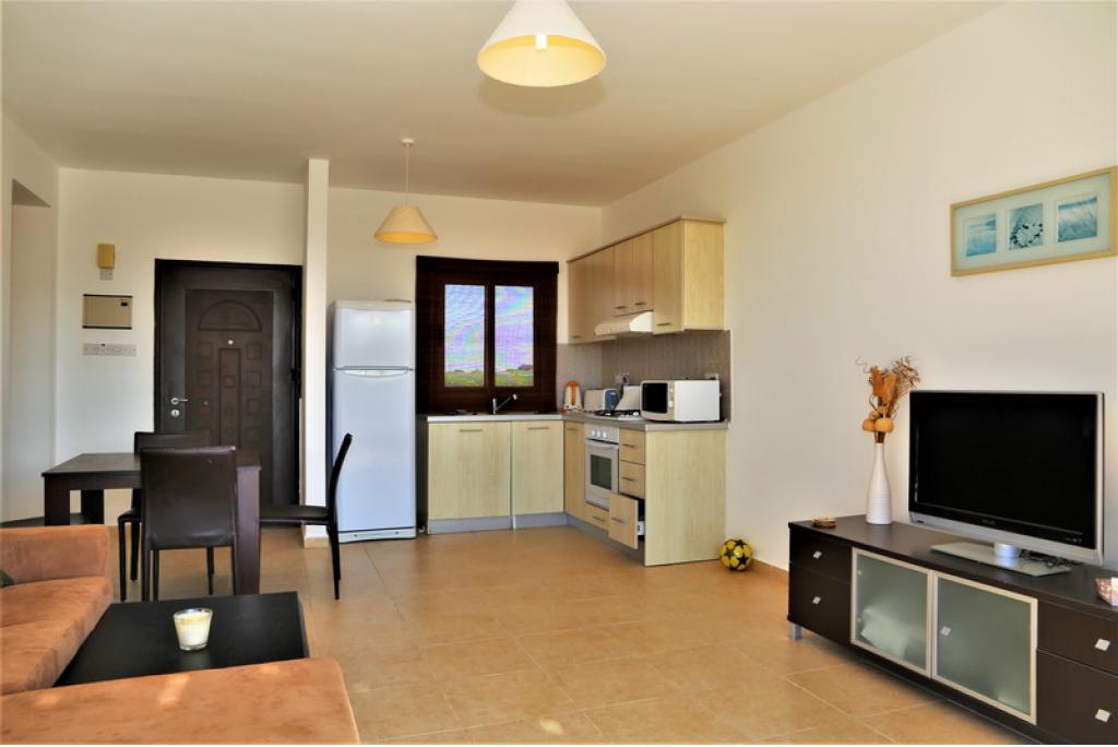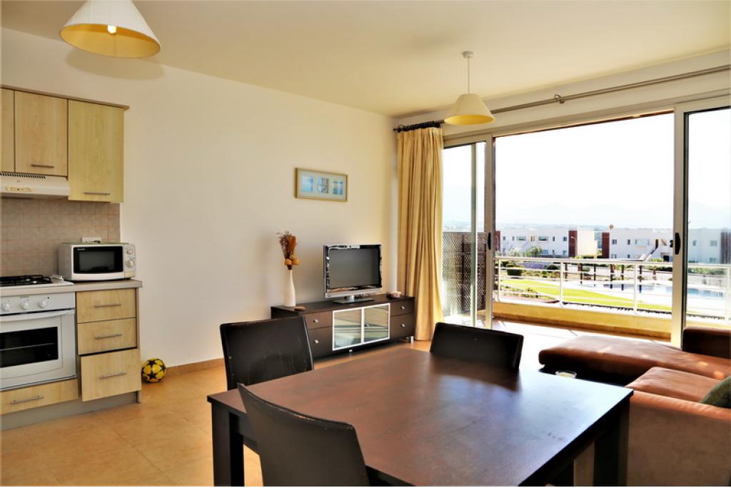 From the entrance of the property you walk in to the open plan kitchen/lounge that has access to a large sea view terrace. The apartment has 1 bedroom with fitted wardrobes, air conditioning, ceiling fan and access to a terrace with the sea view. The property has been well maintained by current owners and will be sold with all furniture. Externally there are stairs which leads you to the roof terrace with panoramic views.
