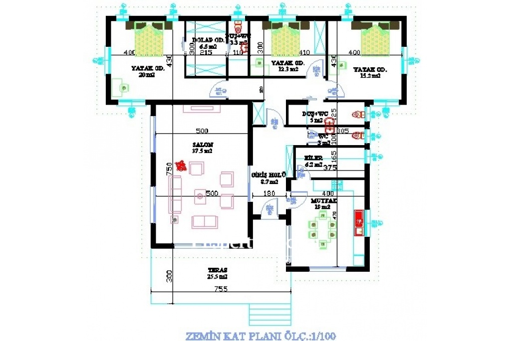180 m2 3+1 SINGLE-STOREY DETACHED HOUSE on a Full Plot in Nicosia Kanlıköy 139.000 STG