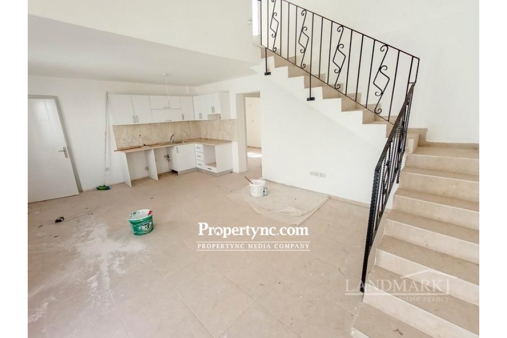 This is a newly built located in the central area of the village called Alsancak. Close proximity to all necessary infrastructure features gives to this property a good rental potential. The road to the popular Escape and Camelot beach will take 10 minutes drive and only 15 minutes drive to Kyrenia city center. Internally, there is an open plan kitchen combined with spacious lounge which has a patio door leading to the balcony with a partly view on the heart of Alsancak area. 2 bedroom are located on the ground floor and they share a family bathroom. On the first floor, there is a third bedroom with a shower cabin and a huge terrace with a magnificent mountains views. Internal size: 90m2 approx. Completed in 2017 Exchange title deed 2 bedroom on the ground floor 1 bedroom on the first floor with a shower cabine 1 family bathroom Fitted wardobe in the 2nd bedroom AC infrastructure Balcony on the ground floor Terrace on the first floor Communal roof terrace Close to infrastructure Lovely mountains views - REF: 1830