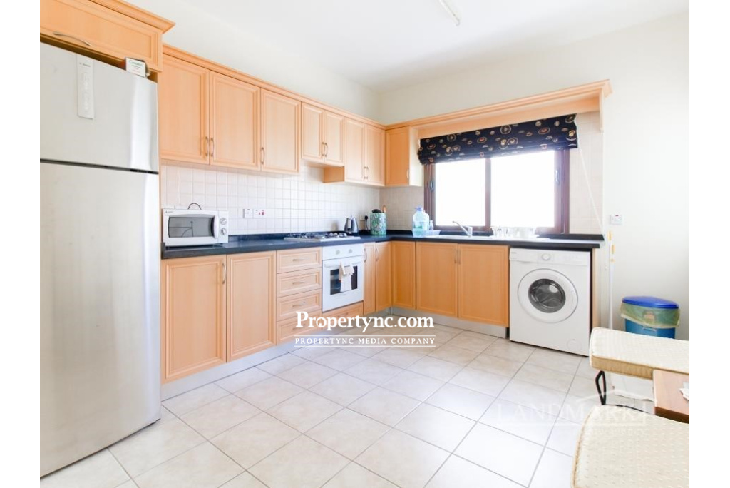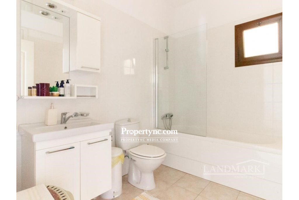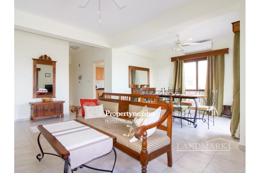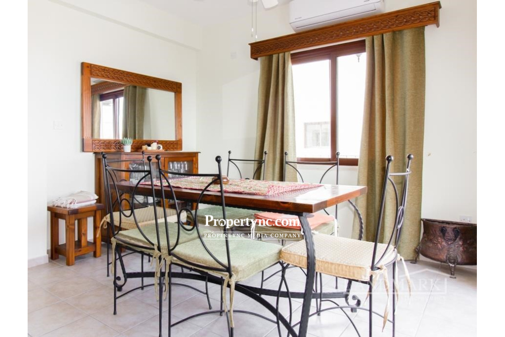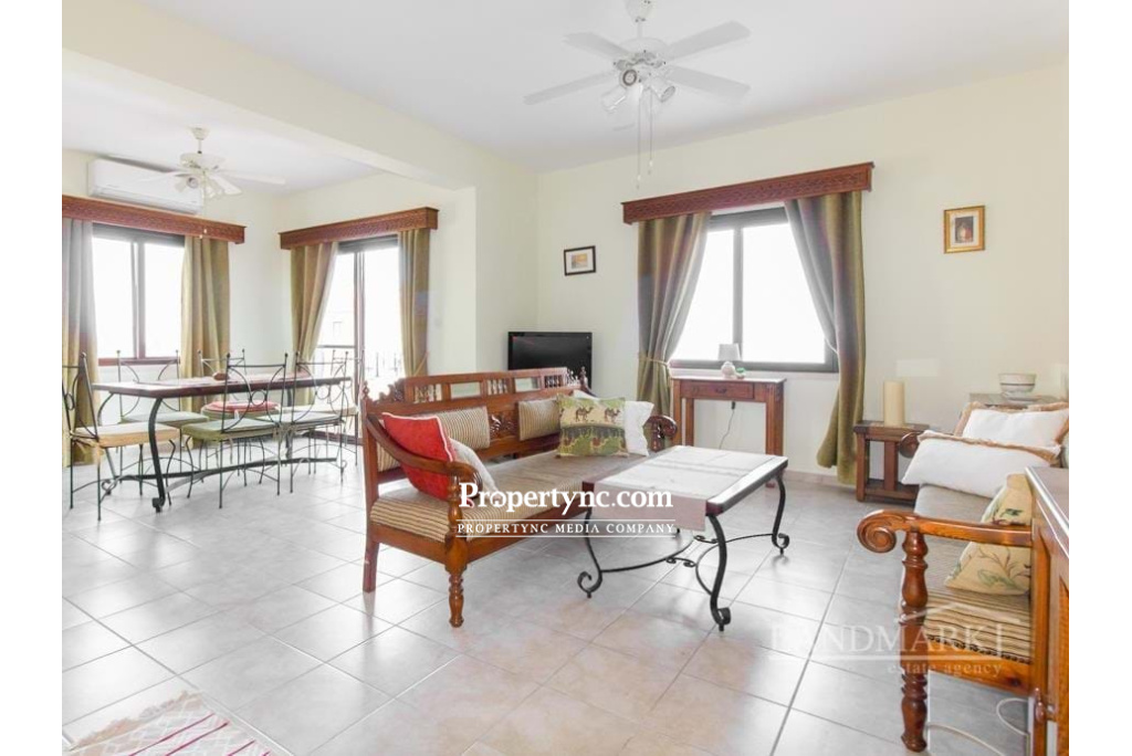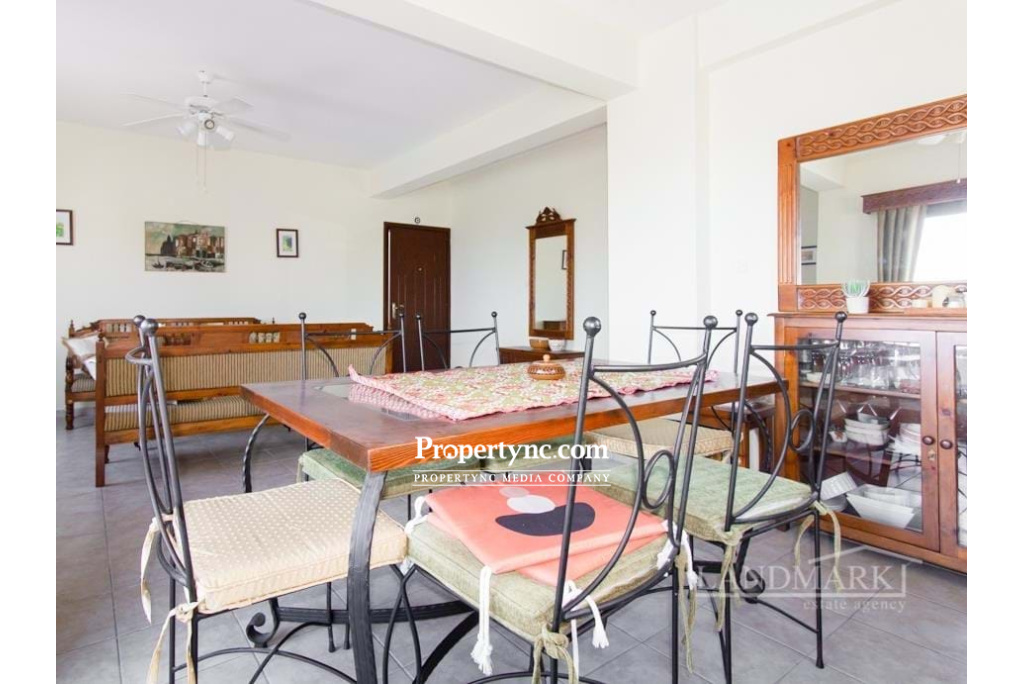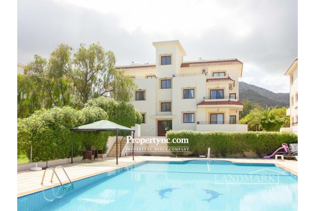 This is an amazing three-bedroom resale apartment with fantastic open views of the Mediterranean and is within walking distance of the sea. The apartment is a short drive to the new Korineum Golf Course and only a 20-minute drive away from Iskele and Famagusta. The apartment provides comfortable spacious living in a peaceful setting. It has been decorated by current owners with very good taste and high-quality furniture, most of which is hand-made of natural wood. It has an open-plan lounge with a dining room and patio doors opening onto a large terrace overlooking the sea and a pool area. There is a separate kitchen with fitted units, kitchen appliances and a door opening onto a terrace. Three bedrooms each with fitted wardrobes, the master bedroom has an en-suite shower room with ceramic tiled walls and flooring. There is a large family bathroom with a bath. The gardens as well as the site in general are carefully looked after by the Management Company. 130m² internal size approx. 13m2 terraces Exchange title Title deed in owners name, VAT paid Completed 2010 Furnished Communal pool 16m x 8m 3 bedrooms, master en-suite with shower Family bathroom with bath Fitted Kitchen Granite worktop Kitchen appliances Air conditioners x 2 Amazing views of the sea Property maintenance £550 per year (could be changed) - REF: 576l