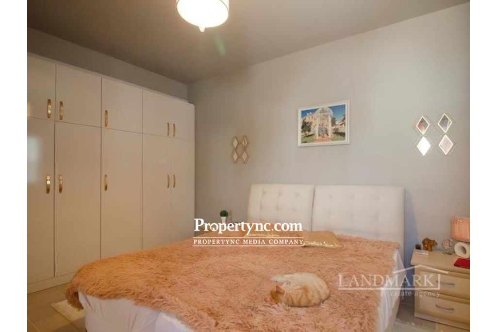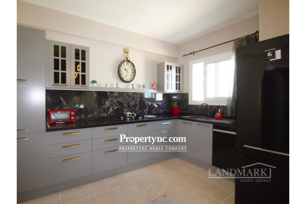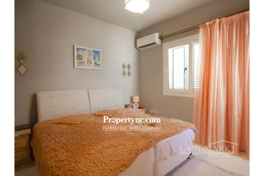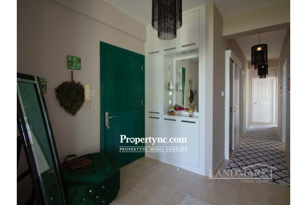 This beautiful, spacious 3 bedrooms apartment is situated in a quiet secluded area in Catalkoy village, yet close to all amenities at the same time. The district is very picturesque and surrounded by many green areas. From the roof terrace of the apartment, there are views of the sea and mountains. The apartment is located on the first floor and is very neat and well maintained. The living room has an open fireplace and access to a balcony with a sea view. There is a separate kitchen with a modern fitted kitchen with granite worktop and integrated white and silver goods. The dining area also has an access to a balcony. All three bedrooms have fitted wardrobes and one bedroom has a balcony overlooking the pool and the mountains. There are two family bathrooms one with a bath the other a shower. There is a private roof terrace belonging to the apartment with a wooden pergola. The terrace has amazing views of the mountains and the sea. The apartment is fully ready to move in. Really this is an amazing apartment to live in permanently or enjoy the summer holidays! Internal size approx. 112m2 Roof terrace 40m2 approx. Title deeds in the owners name VAT paid Exchange title deeds Completed in 2010 Swimming pool 8m x 4m Furnished (negotiable) 3 bedrooms 2 bathrooms Gold plated rain showers, water taps and mirrors frames 3 balconies Air conditions x 1 Kitchen appliances Open fireplace Double glazed white windows Ceramic flooring 2 tons water tank Water heater (electrical and gas) Demir Dokum BBQ 100 TL maintenance fee - REF: 1817