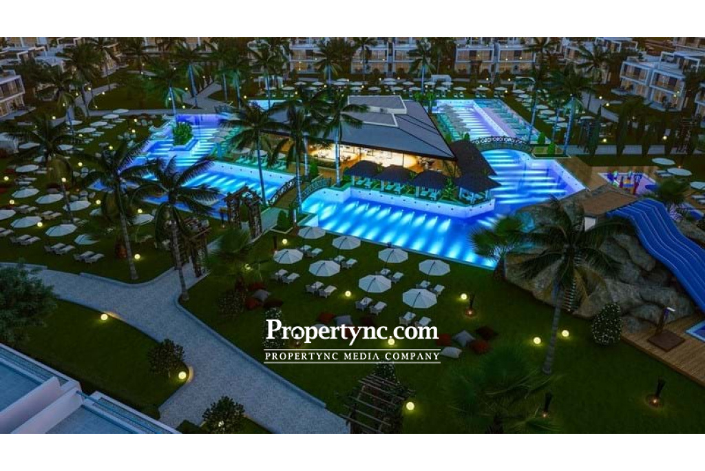 Apartments comprises of studio, 1+1, 1+1 duplex and 2+1 and 2+1 penthouse units which transform your space into whatever your heart desires. Including both entertainment for children and adults, as well as technically important facilities like on site generator and security cameras. 48.3m² living area 37.4m² roof terrace Exchange title deed Completion in 2026 Communal swimming pool 1 bathroom A infrastructure Double-glazed windows High gloss kitchen cabinets Suspended ceilings Fitted wardrobe Fully equipped bathroom Interior doors Parking space for each apartment Ability to order a design package Café Restaurant Gym Private beach Shuttle service Communal garden space Childrens Park Cabanas at the communal swimming pool Extra payment: - Trafo fee £2.000 - VAT fee - Stamp fee Payment plan: - £3.000 deposit fee - 35% to be paid in 28 days after signing the reservation form - 45% interest free remaining to be paid until completion - 20% to be paid after completion in 12 months - REF: 1989a-3