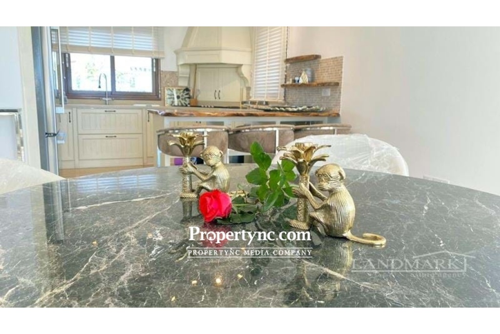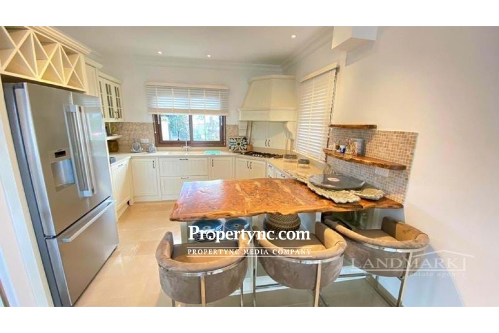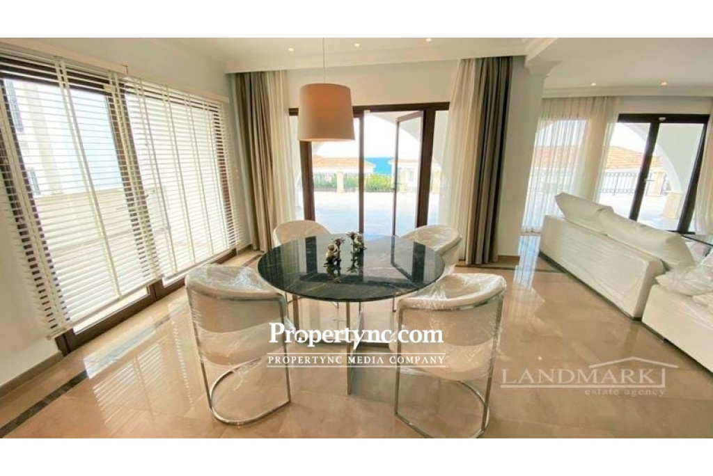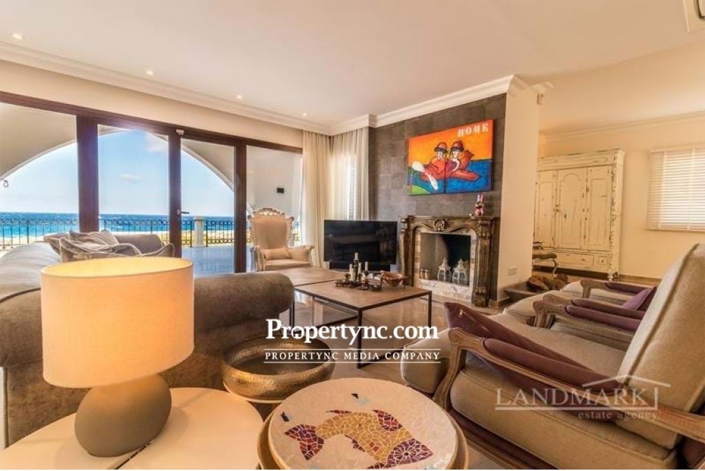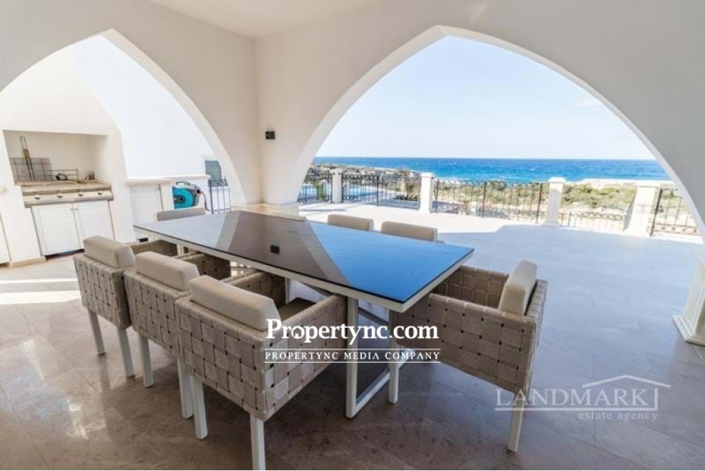 This stunning villa is located in a picturesque and quiet place right by the sea in a newly built complex in Esentepe. The complex enjoys the best views of the Mediterranean Sea and Five finger mountains range. The complex has all the necessary infrastructure: communal swimming pool, fitness centre, sauna, childrens playground, BBQ area, restaurant, private beach, management site office and full maintenance service. The villa is front line to the se and has lots of large terraces, one is with a well-equipped BBQ area with a kitchenette and there is plenty of areas to enjoy the sea views. The interiors are tastefully made using high quality natural materials such as wood and marble. There is a spacious lounge with open fire place, spot lights and large glass windows and doors to take advantage of the natural light and maximise the sea views. The kitchen and the dining area are fully equipped in a modern and tasteful manner with high quality furniture, white goods and kitchenware. The master bedroom has a modern en suite bathroom and a walk-in wardrobe with a freestanding bathtub. The large wall to wall glass patio door overlooking the sea. The villa has a charming landscaped garden with garden furniture. 180m closed area 750m2 plot size approx. Completed 2016 Exchange title deeds VAT to pay Beach front 4 Bedrooms 4 Bathrooms Partly Furnished Ready to move in Under floor heating system Central AC system Site's amenities (private beach, communal swimming pool, fitness centre, sauna, childrens playground, BBQ area, restaurant, management site office and full maintenance service) Landscaped Garden Flexible Payment Plan Place for a swimming pool - REF: 623e