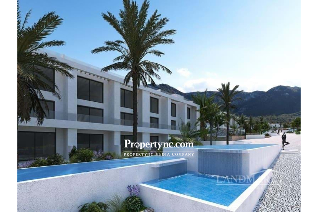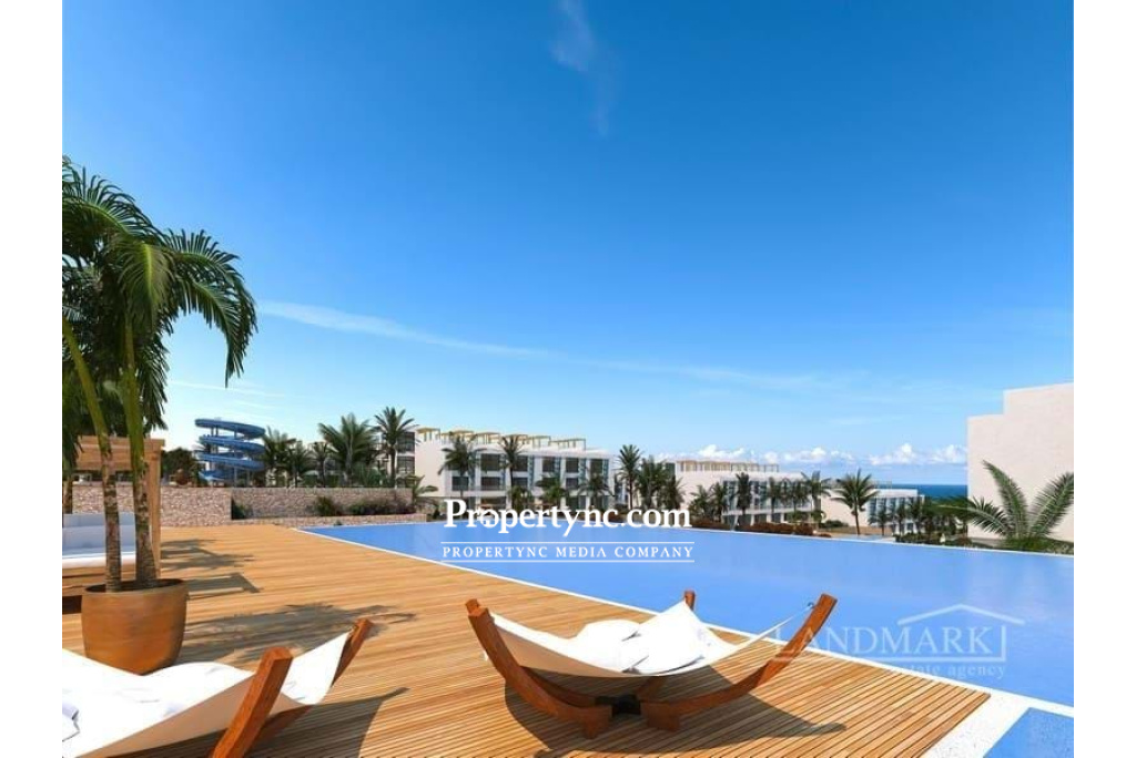 This is a new holiday project of a well-known construction company, which will be located between the mountains and the Mediterranean Sea on the east coast of Kyrenia in the beautiful Kucuk Erenkoy region of North Cyprus. This project is the definition of luxury, with its modern, environmentally friendly architecture. It will be built in a modern style with elements of nature, including natural stones. Being a part of a holiday complex, many high-class facilities and amenities will be available for a relaxing and prosperous lifestyle in the Mediterranean. The total land area of the complex is 267,600 m2 of which 200,000 m2 is green area. The whole complex has an advantageous location and different heights above sea level front end is 38 meters going up to the highest point of 90 meters above the sea level. On the territory of the complex different kinds of recreational, wellness, social and entertainment facilities are provided. 60-67m2 internal area 6-12m2 balcony 36m2 roof terrace for penthouses VAT to pay Completion in 2026 Communal swimming pool 1 bedroom 1 or 2 bathrooms Fully fitted kitchen units Ceramic wall tiling above base units Built-in wardrobes Fitted sanitary ware Aluminium double-glazed windows Communal Landscaped gardens: fully designed & planted Off-street parking Kids play area Zen gardens Sports club and jogging track Health center (ambulance, pharmacy, etc.) Spa & Wellness center at the top of the project Restaurant Communal BBQ gardens Electric vehicle stations Supermarket On-site management and rental office Trafo fee TBC Payment plan: - 30% down payment; - 10% payment after 6 months break; - 10% payment after 6 months break; - 50% payment for interest free payment plan for 36 months. - REF: 177y-1